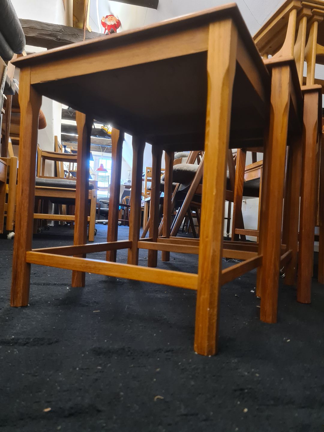 Indskudsborde fra 1970'erne i teak og med kakler. Fremstår pæne og stabile dog med bitte små afslag på kakler på det største bord. Højde 48 cm. Bredde 55 cm. Dybde 40 cm. Emne nummer: 81044