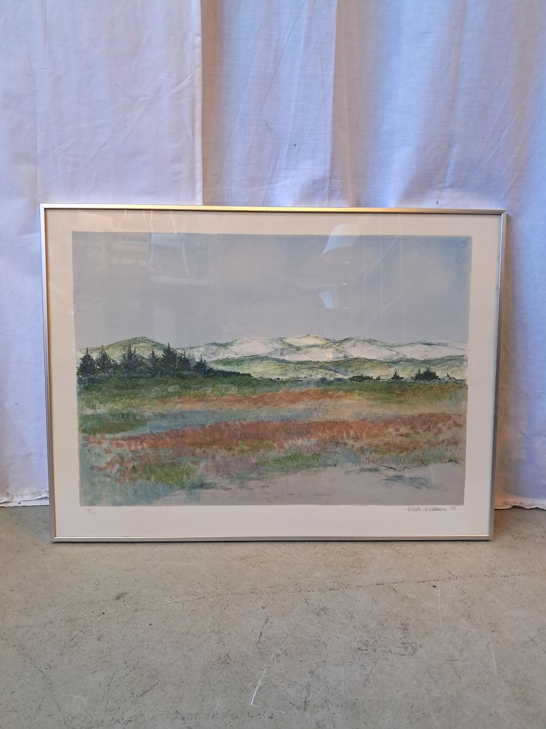 Signeret tryk i aluramme, fra 1980erne.
