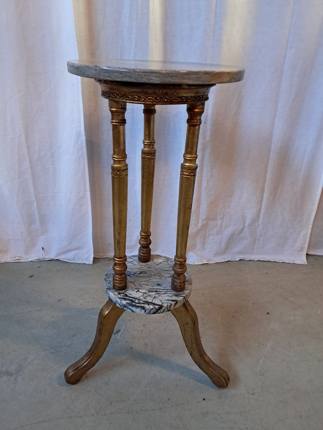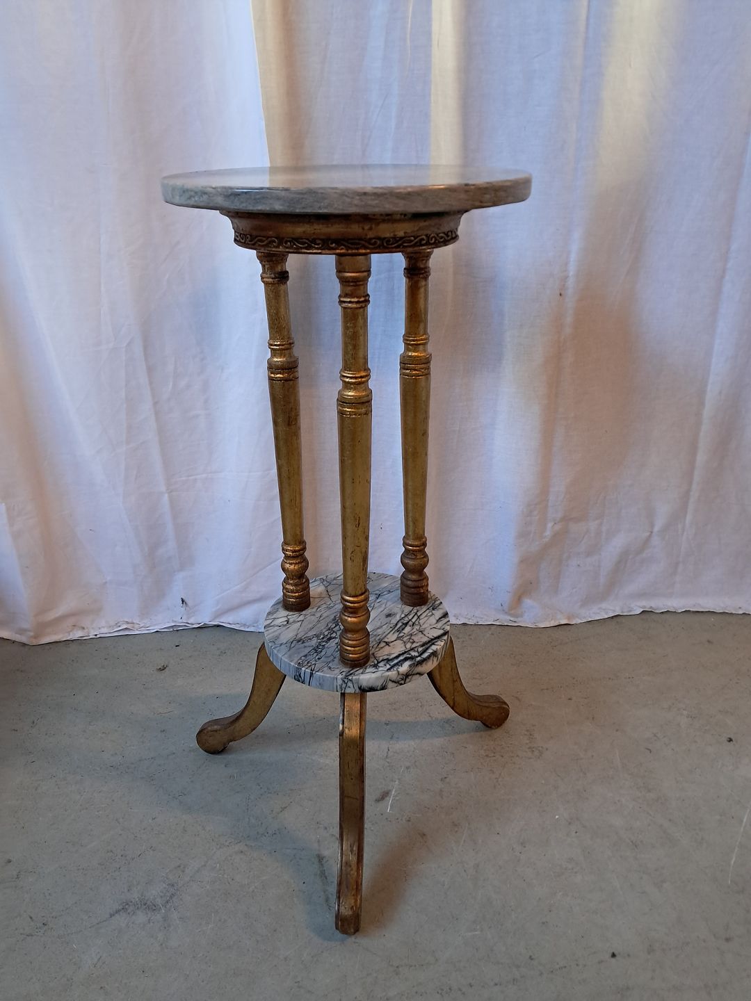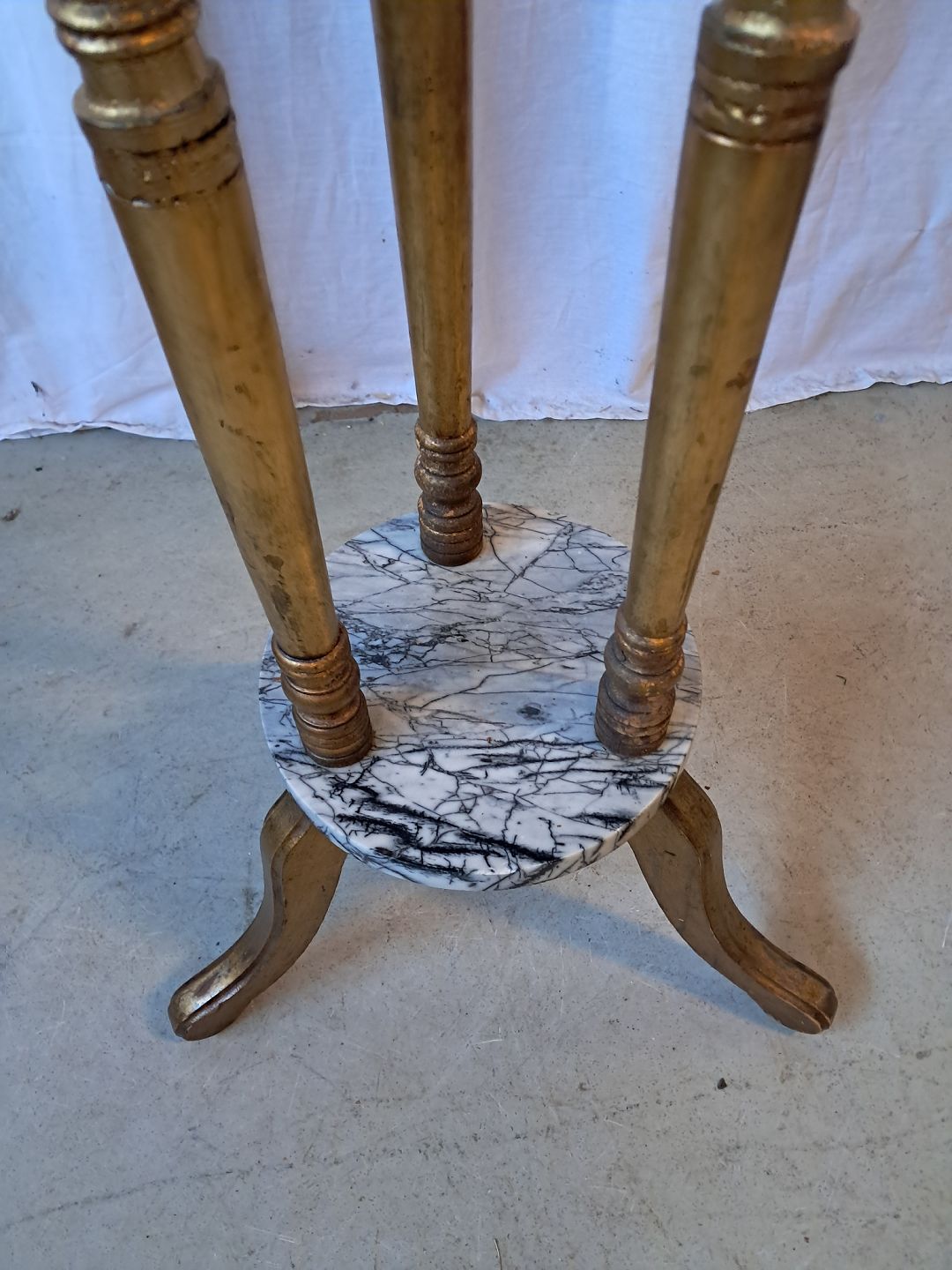 Guldmalet piedestal med marmorplader, fra 1950erne. Den har brugsspor. Højde 73cm Diameter 334cm Emne nummer: 78008