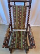 Rokkestol i massivt egetræ med broderet betræk, fra 1940erne.