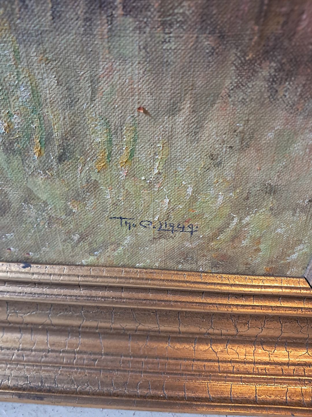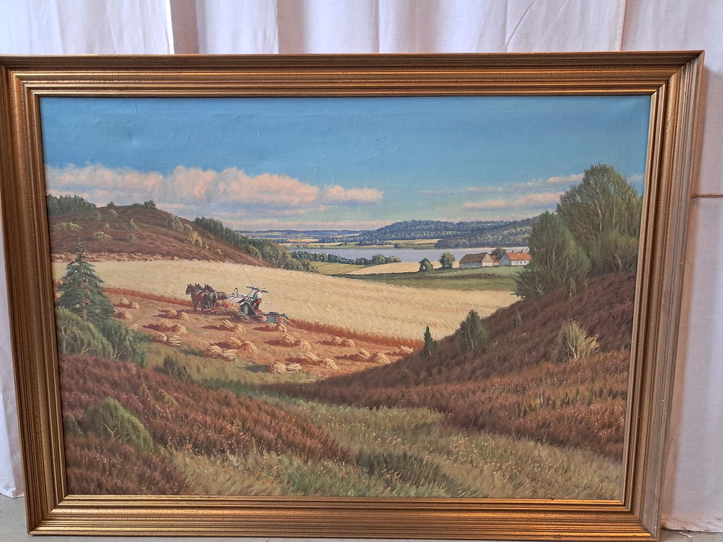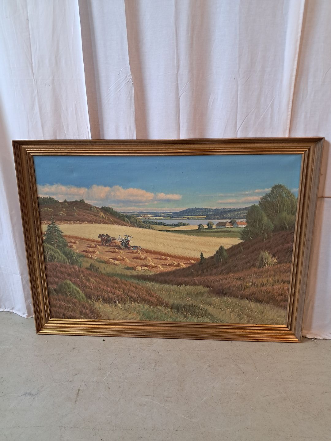 Maleri i guldmalet ramme, fra 1950erne. Det har brugsspor. Højde 98cm Bredde 133cm Emne nummer: 78050