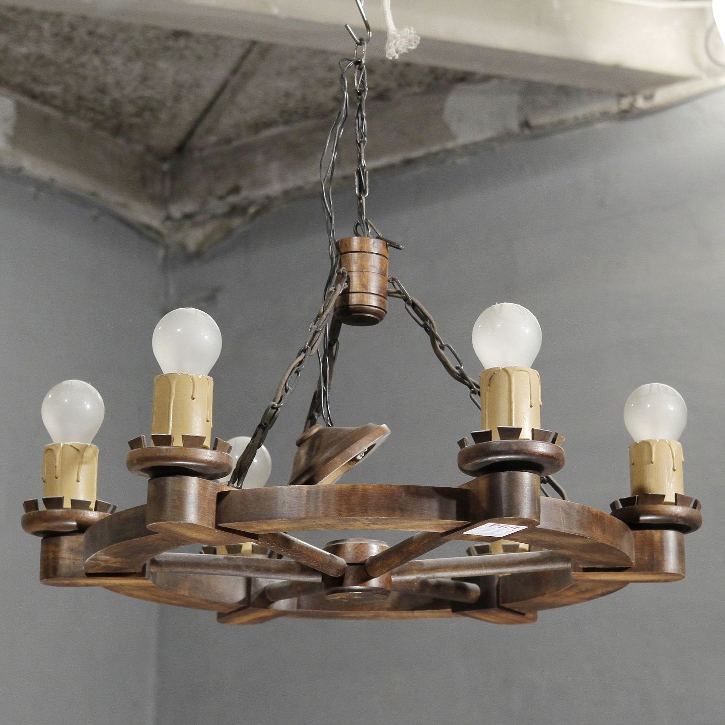 6-armet lysekrone i bejdset træ, 63 cm i diameter, ca. 1950