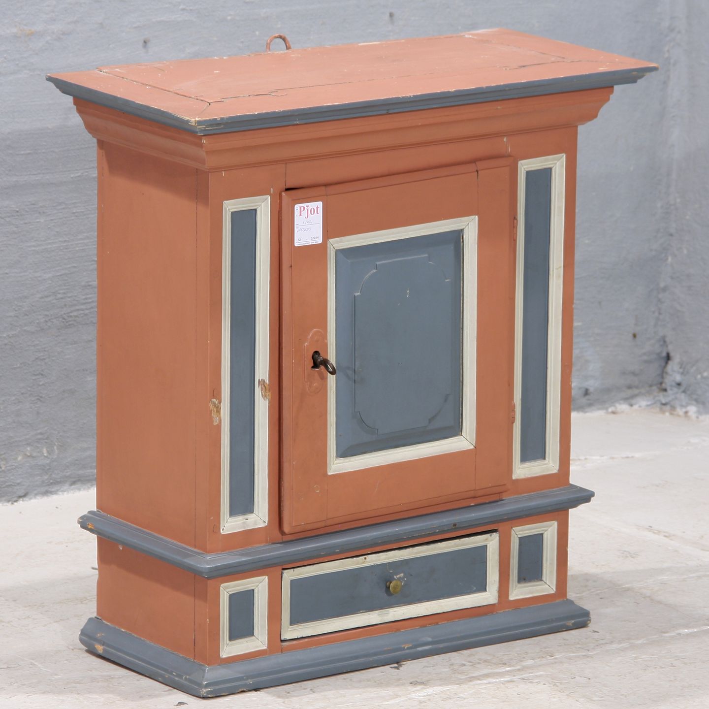 Malet vægskab m. låge og skuffe, (HxBxD 70x68x31 cm), 1850-1870