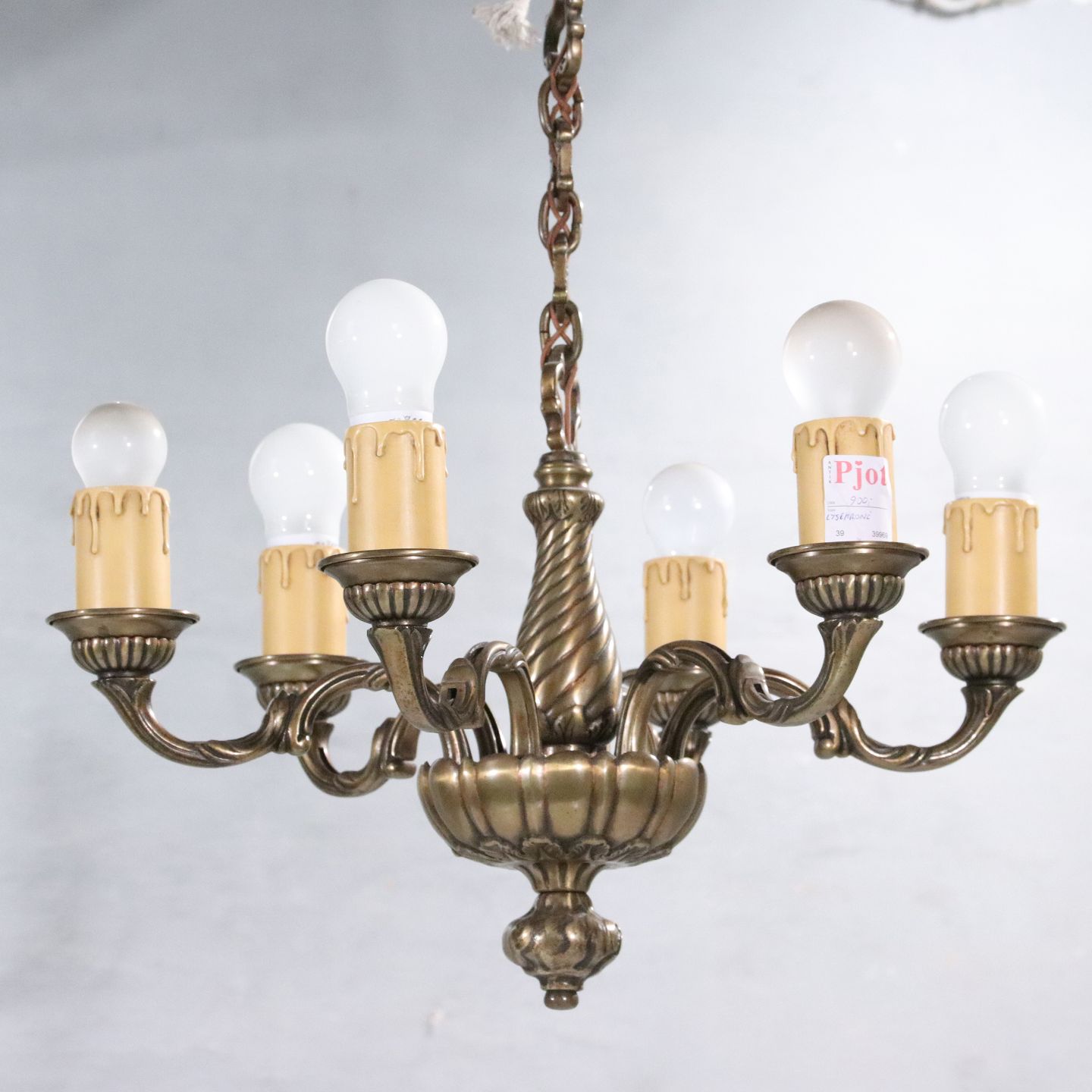 6-armet lysekrone i messing, 55 cm i diameter, ca. 1950