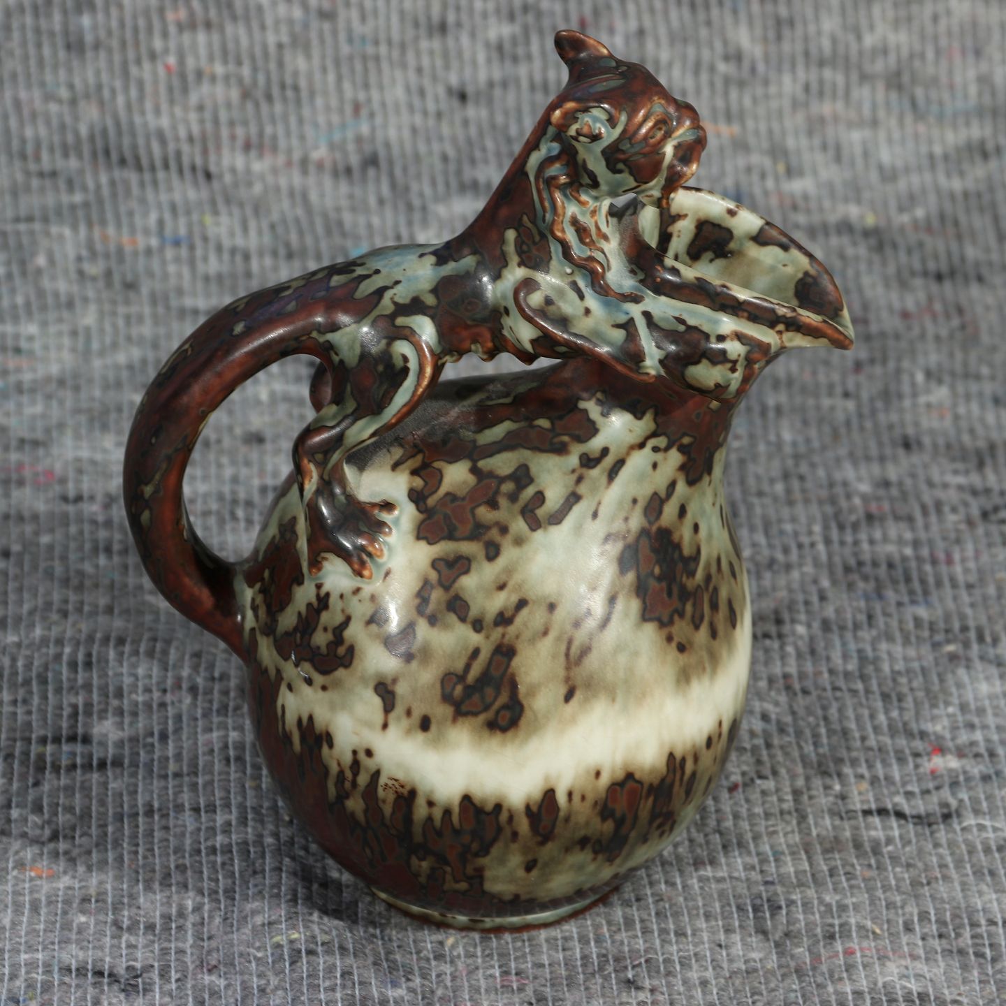Løvekande i stentøj med Sung glasur, designet af Bode Willumsen og produceret på Den Kongelige Porcelænsfabrik, højde 17 cm, første sortering, serienummer 20128 Emne nummer: 50120
