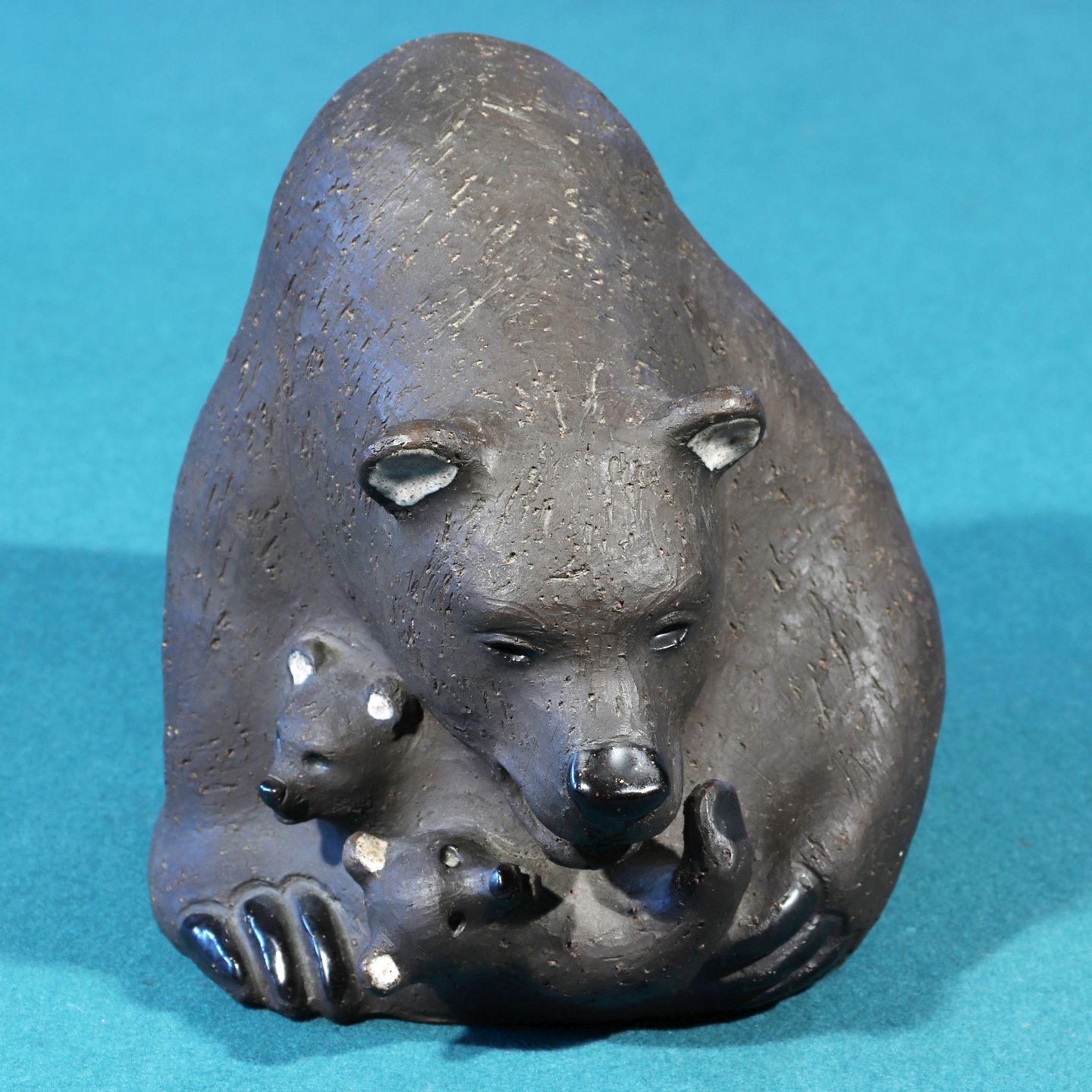 Bjørnemor med unger, unika i stentøj af Holger Jensen for Hyllested Keramik, højde 22 cm, bredde 24 cm, signeret i bunden Emne nummer: 50154