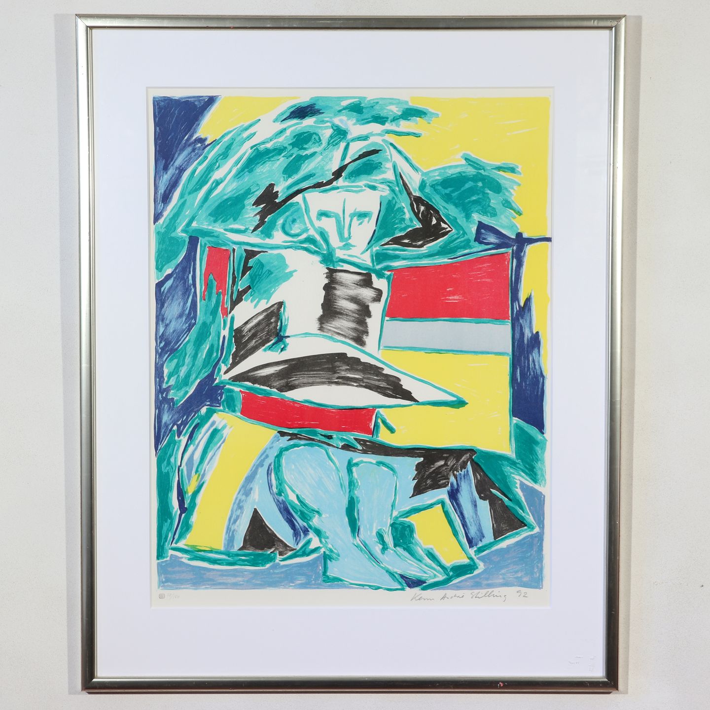 Kenn Andre Stilling (f. 1945) litografi i farver signeret med blyant Kenn Andre Stilling 1992 nr. 78/180 rammemål højde 91,5 cm, bredde 73 cm Emne nummer: 50250