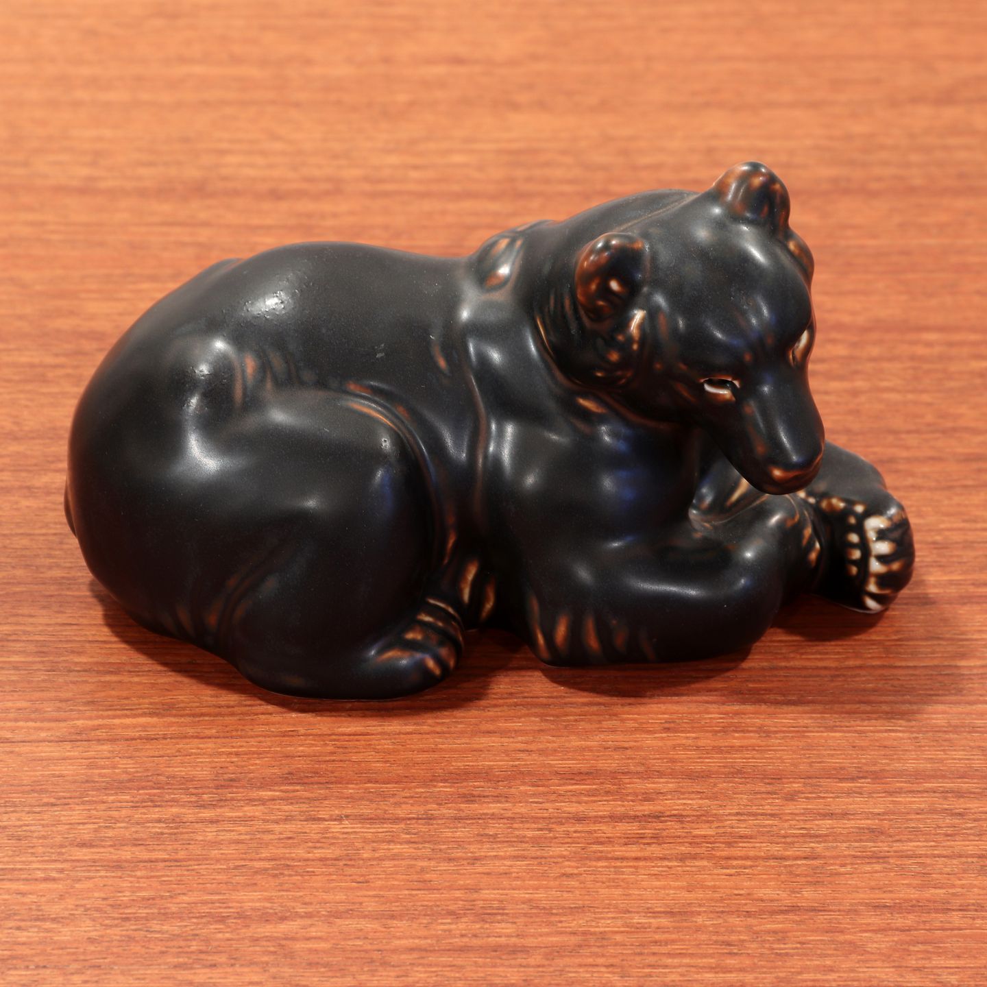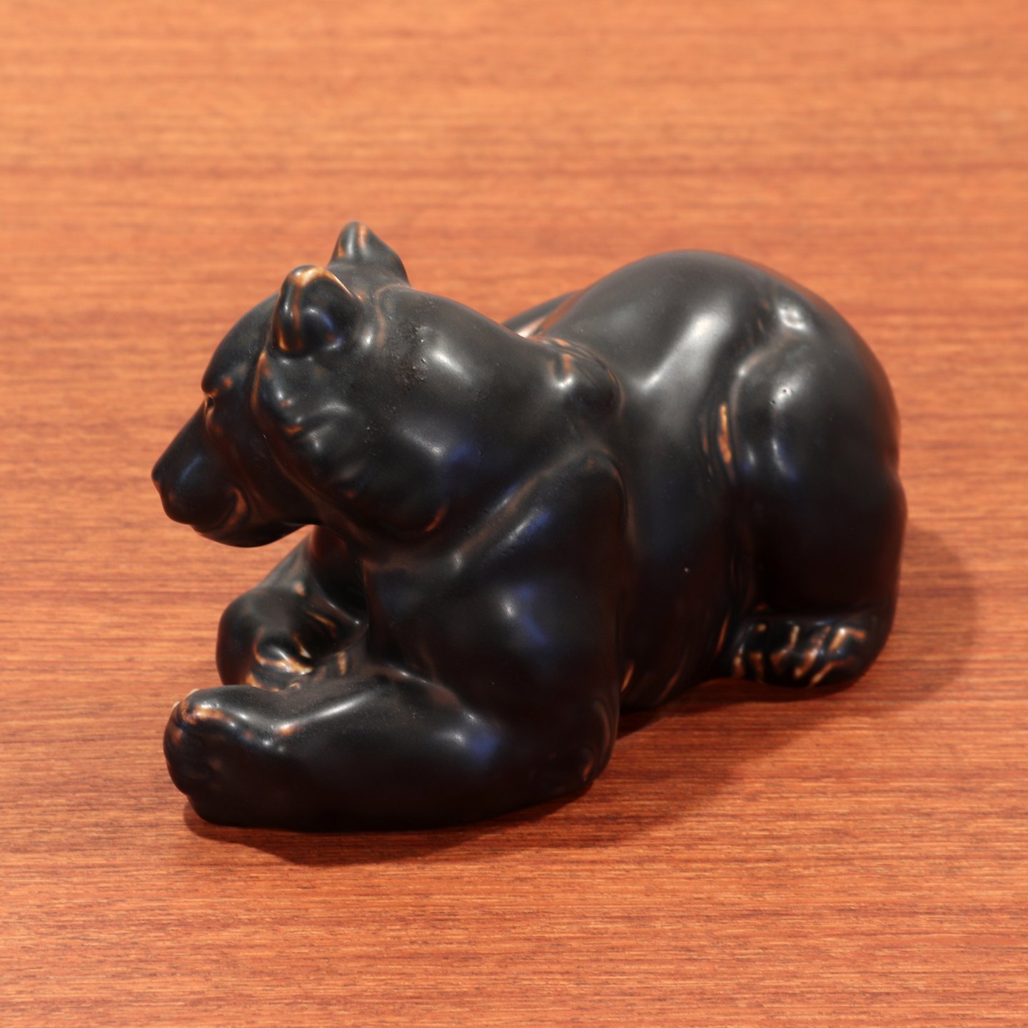 Knud Kyhn for Den Kongelige Porcelænsfabrik, 'Liggende Bjørn' nr. 21520, 1. sort., højde 13 cm, længde 21 cm Emne nummer: 50177