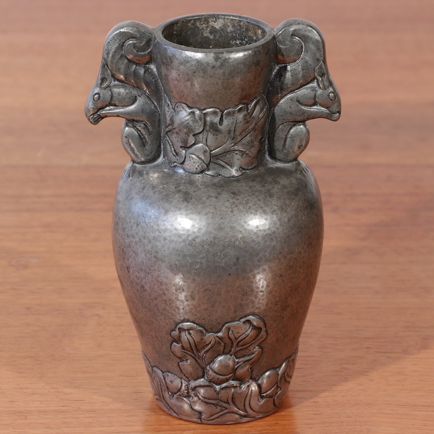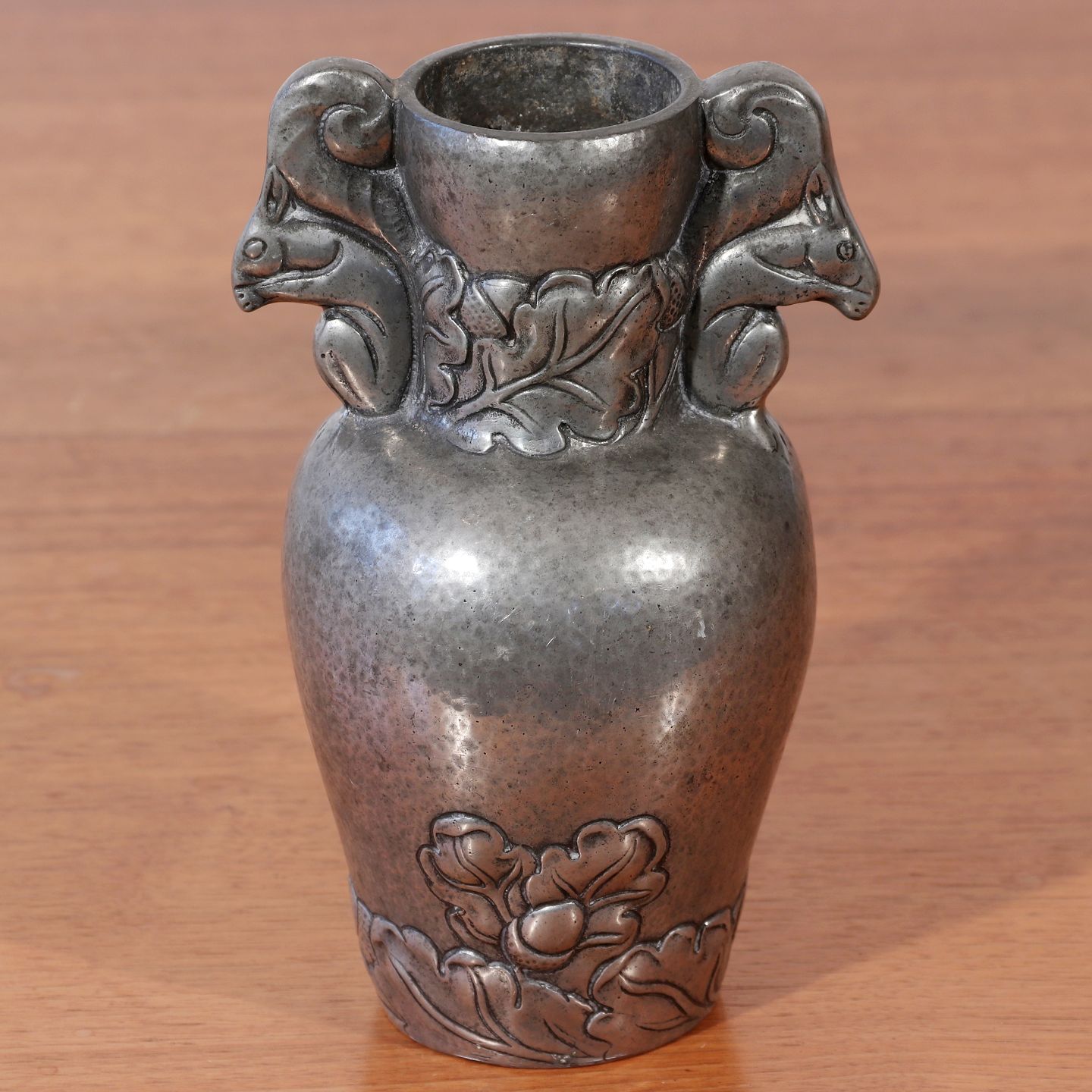 Hertz & Ballin skønvirke vase i tin model nr. 1819. Højde 18,5 cm, diameter ca. 12 cm Emne nummer: 50401