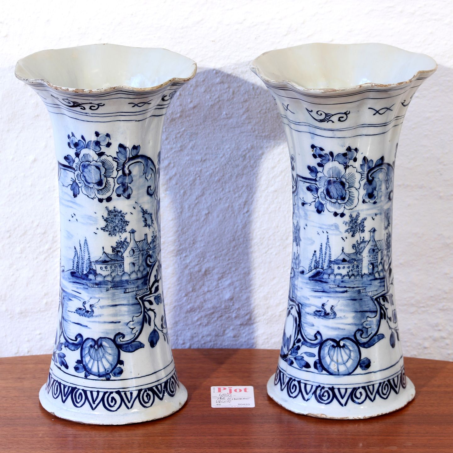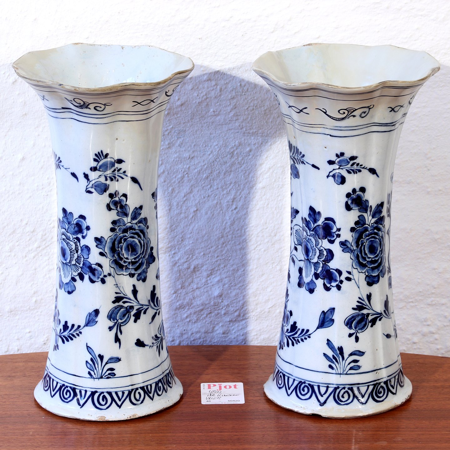 2 hollanske vaser i glaseret porcelæn, OBS div. afslag på kanterne