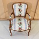 Armstol i bejdset bøgetræ m. broderet betræk, OBS defekt sædebetræk, rokokostil, 86 cm høj, sædehøjde 41 cm, 1950-1960 Emne nummer: 41856
