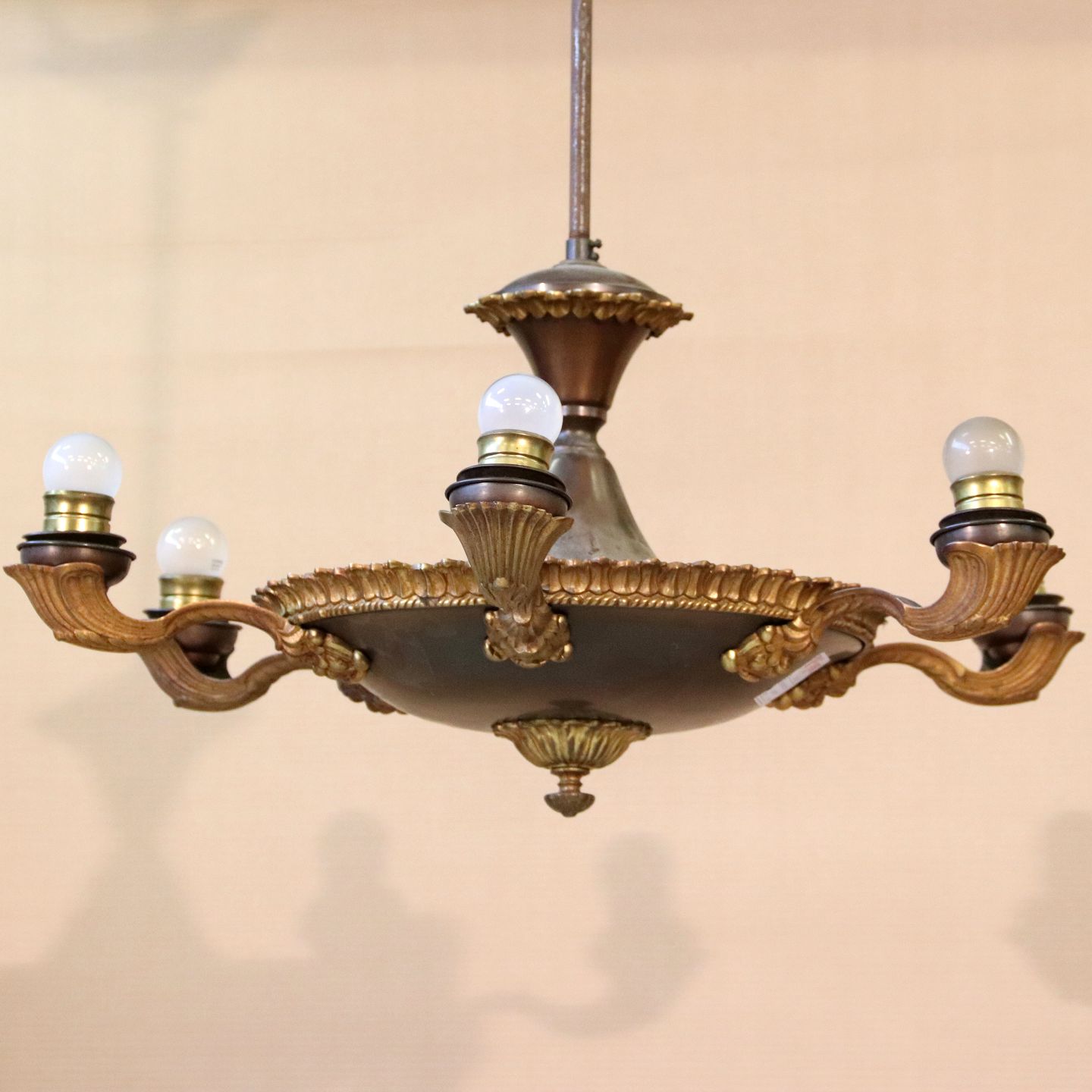 6-armet empirelysekrone i messing, 70 cm i diameter, ca. 1930