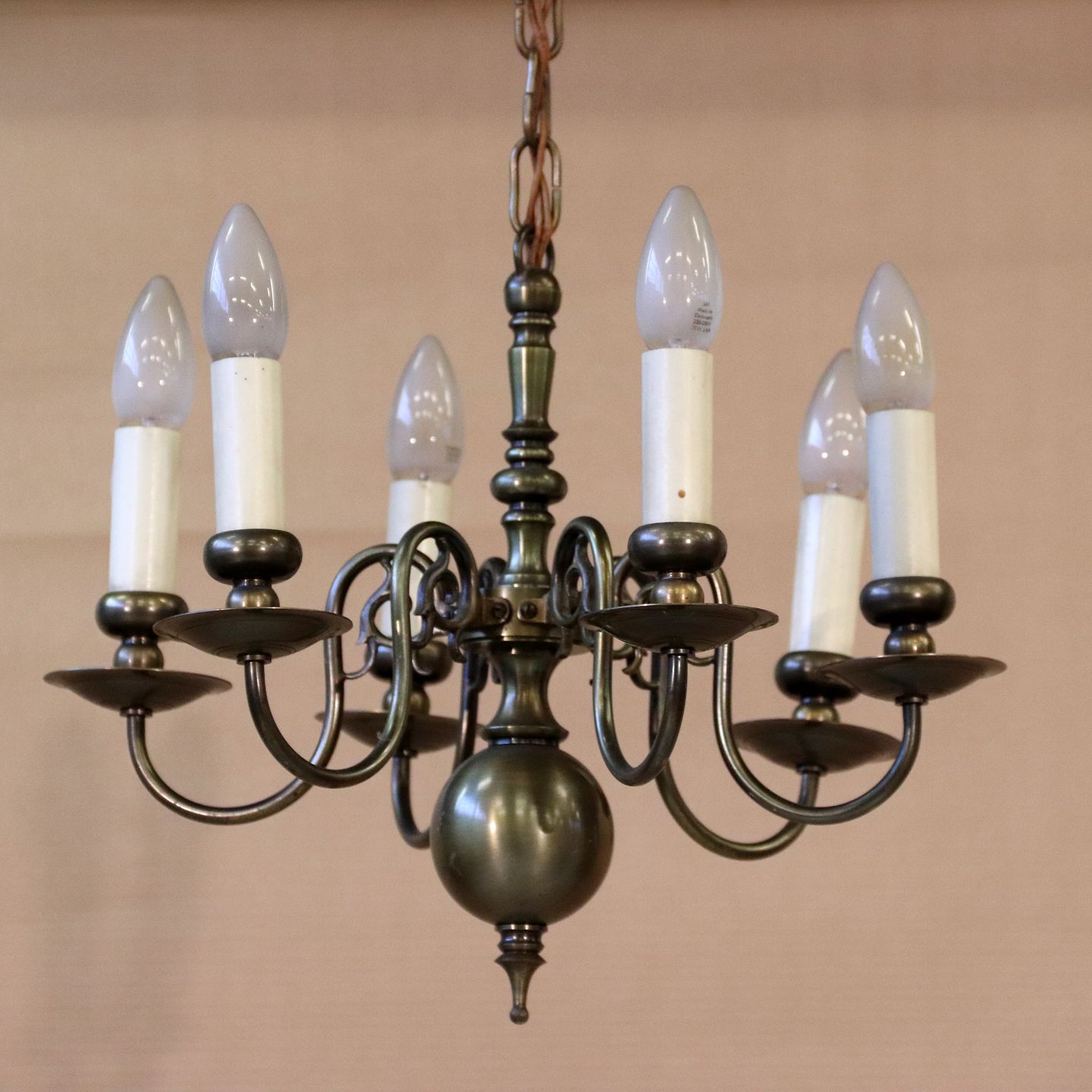 6-armet kirkekrone i bruneret messing, 42 cm i diameter, 1930-1940