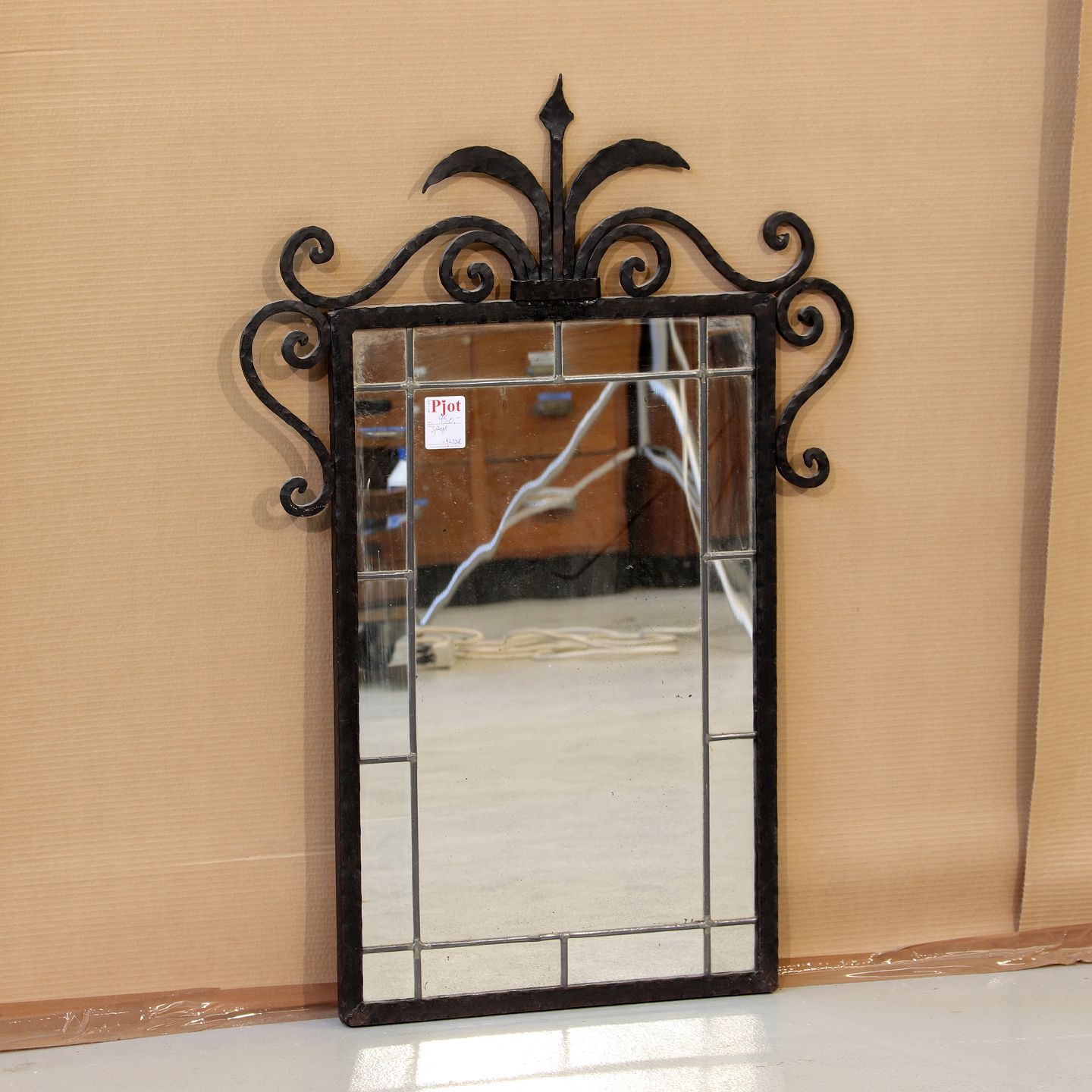 Blyindfattet spejl i smedejernsramme, (HxB 91x61 cm), 1930-1940