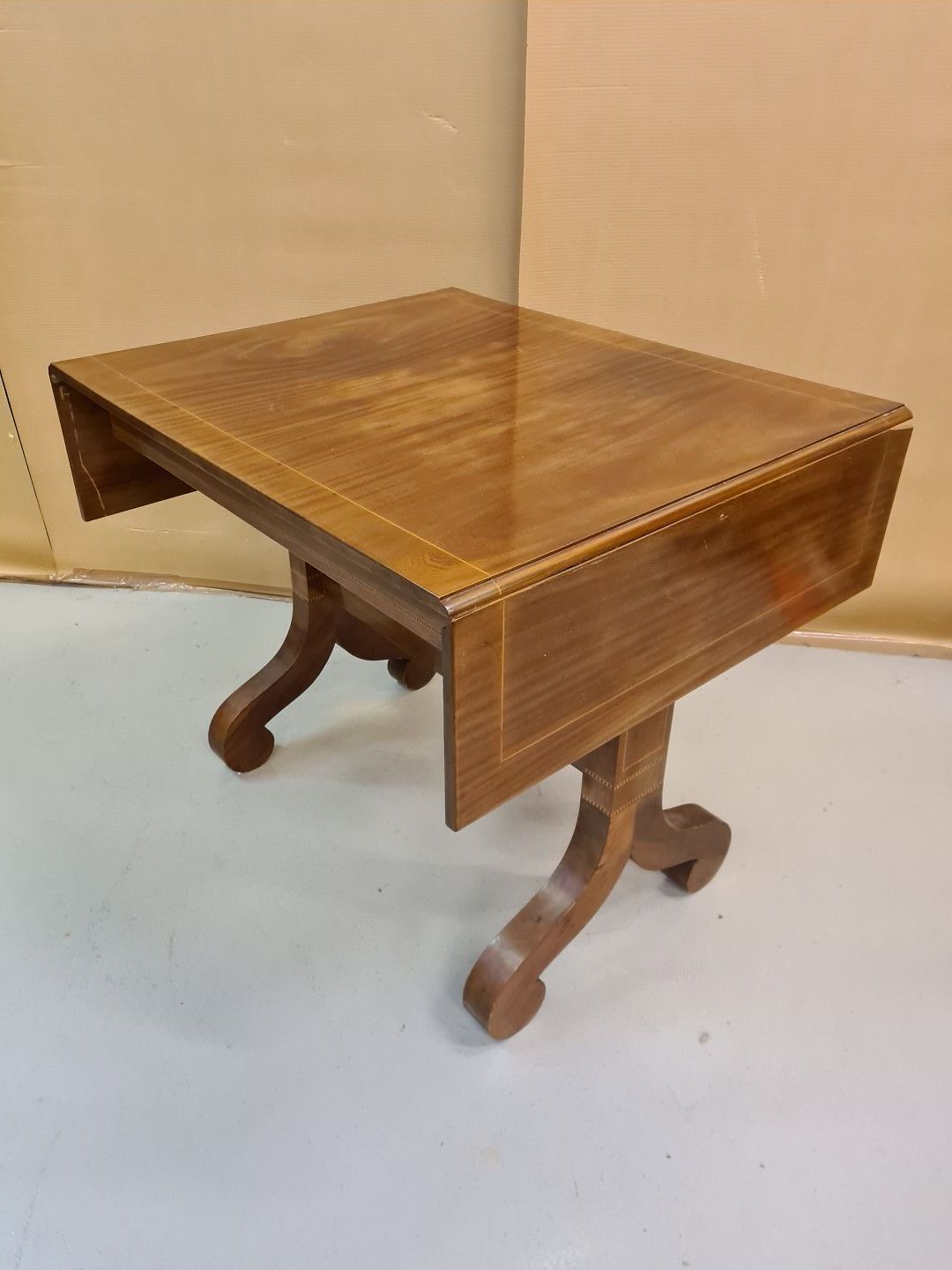 Mahogni fineret salonborb med 2 klapper,der er en defekt på den ene klap. fra 1910erne H 78 B 73 L 90 ,med klapper 133cm Emne nummer: 70067