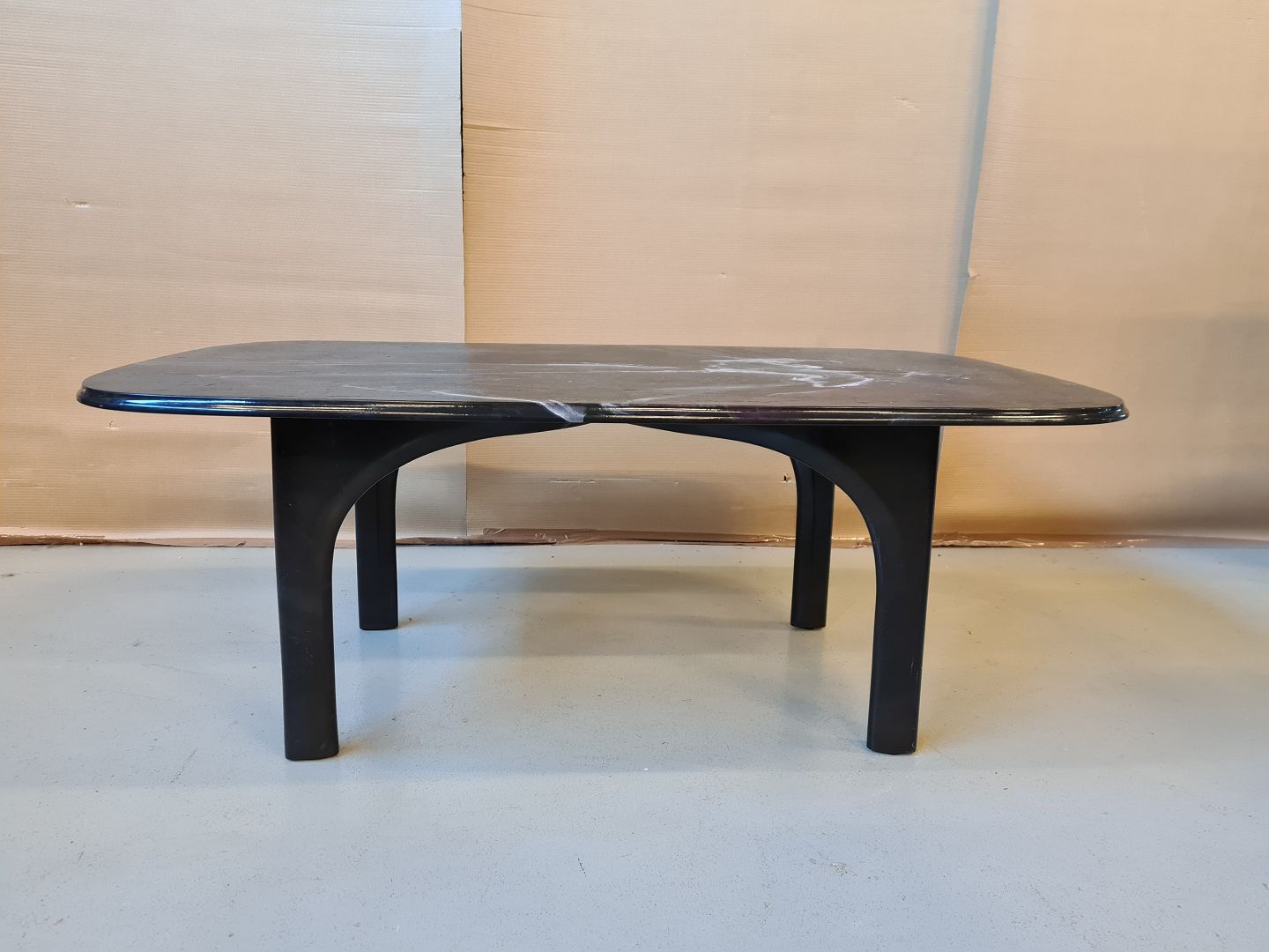 Sofabord med plade af støbt stenmasse og stel af støbt plast. H 50 B 80 L 137 fra 1990erne. Emne nummer: 70194