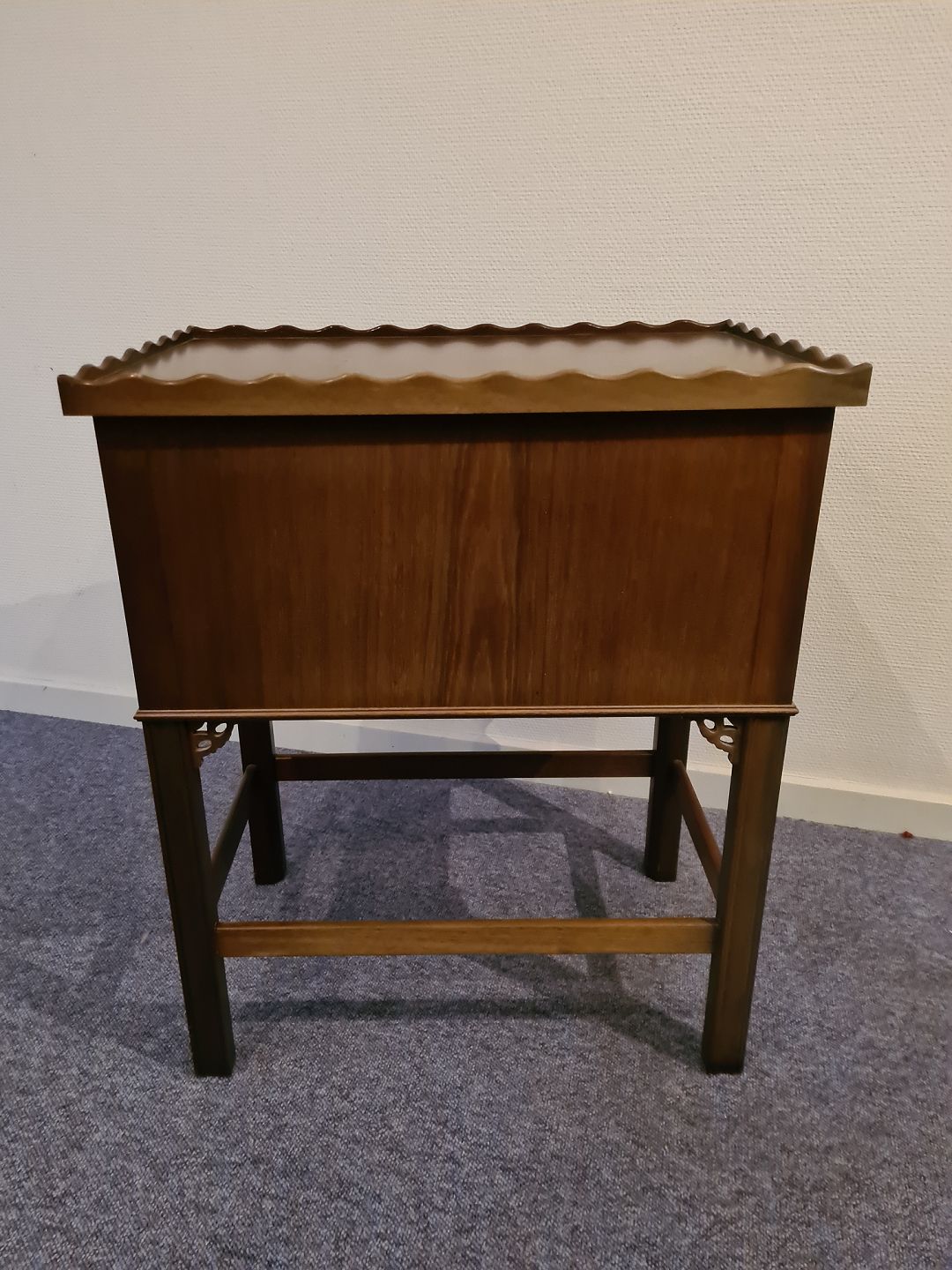 Kommode i fineret mahogni fra 1980erne, den har et lille nøk på hjørnet. H 67 B 56 D 36 Emne nummer: 70229