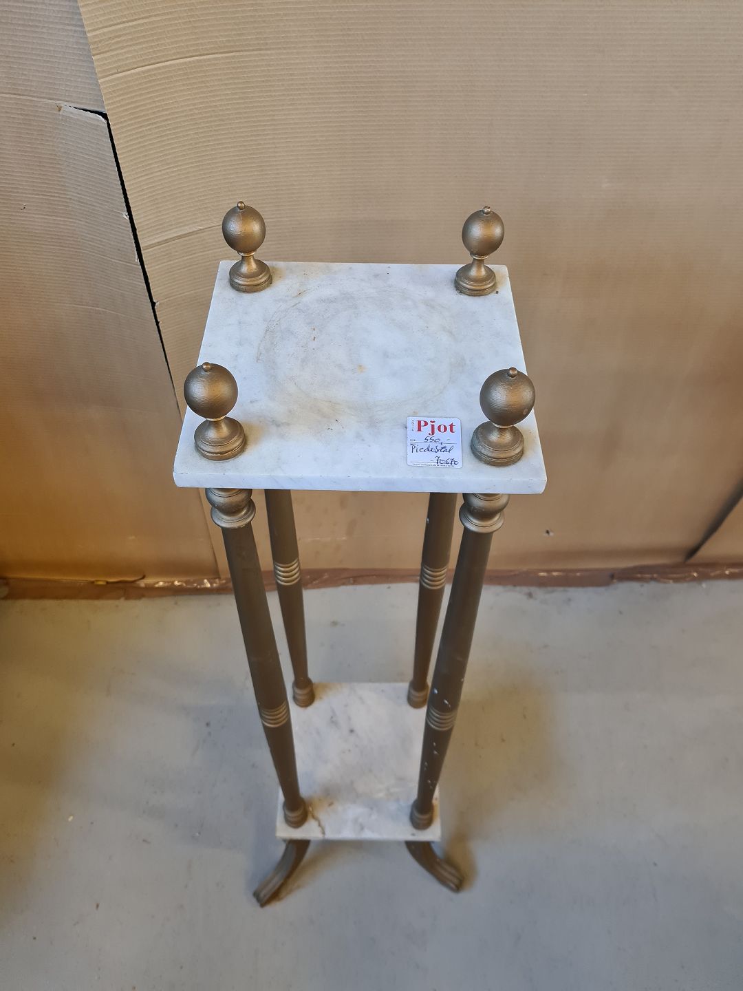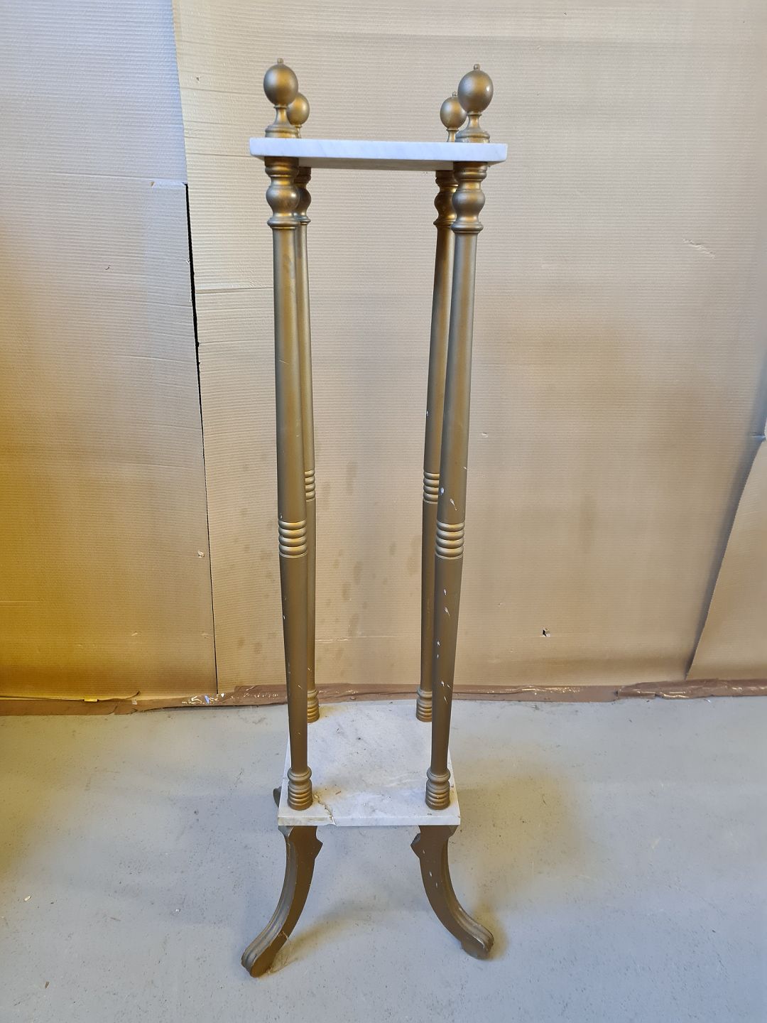 Guld malet piedestal fra 1920erne. Der er en reparation på den nederste marmar plade. H 121cm B 26cm D 26cm Emne nummer: 70670