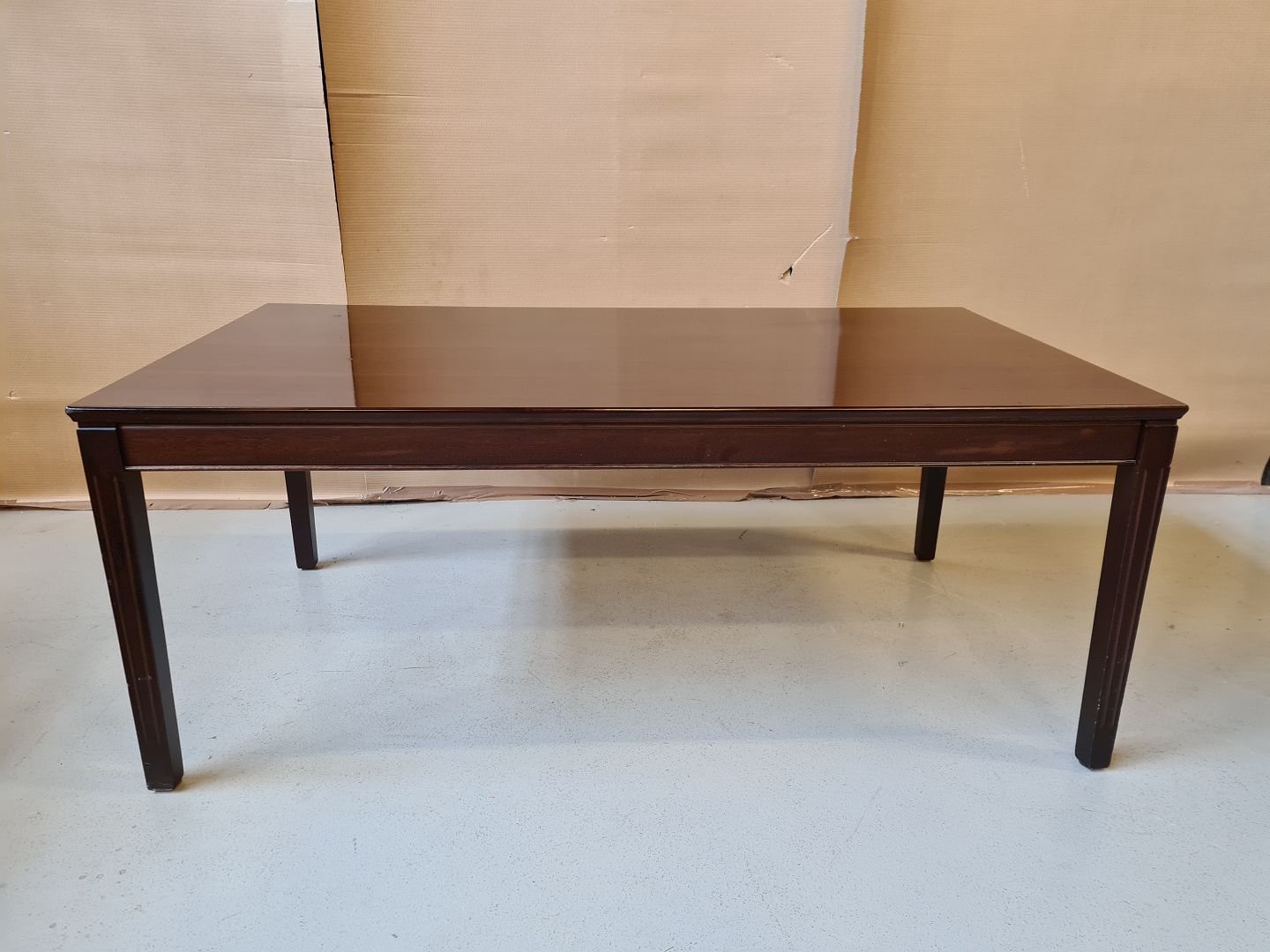 Sofabord i fineret mahogni fra 1990erne. Det har små brugsspor. H 55cm B 76cm L 136cm Emne nummer: 70966