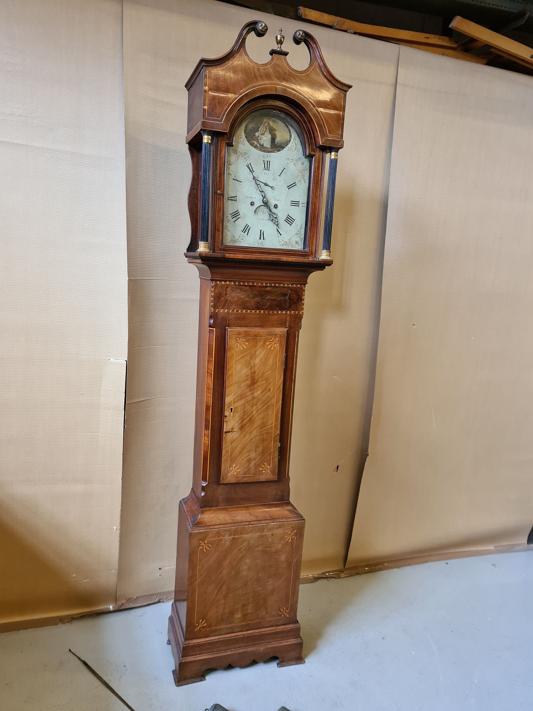 Standur i fineret mahogni fra 1850erne.
