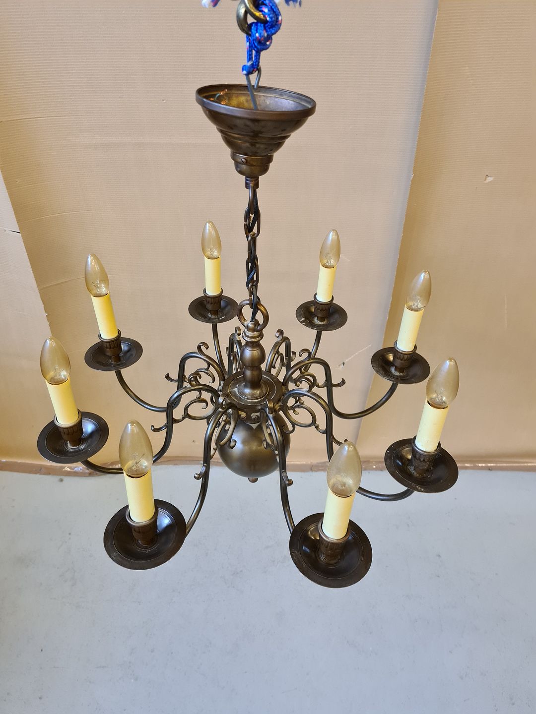 8-armet kirkekrone i bruneret messing, fra 1930erne.