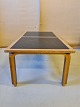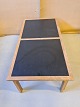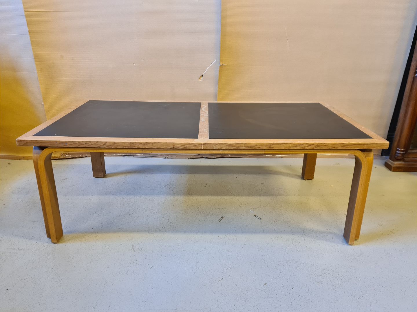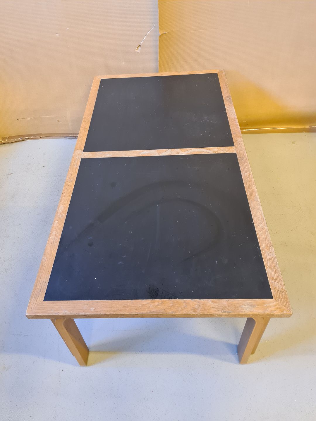Sofabord i fineret egetræ med sort laminat fra 1970erne. Bordet har brugsspor. H 47cm B 70cm L 136cm Emne nummer: 71401