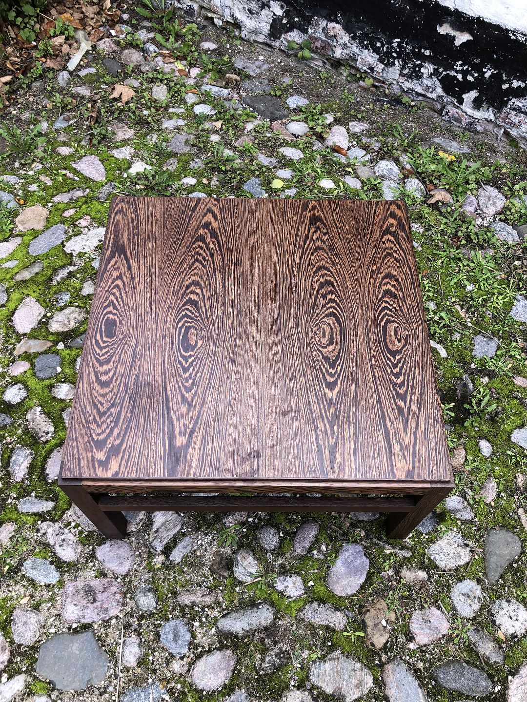 Dansk design kvadratisk sofabord i fineret Wenge træ produceret ca. 1970'erne. Pæn brugt stand. Højde 41 cm. Bredde 70 cm. Dybde 70 cm. Emne nummer: 80061