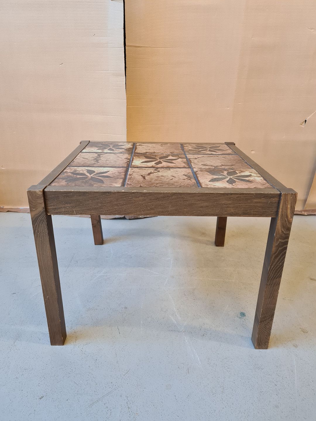 Lampebord i ege og fyrretræ med kakler fra 1970erne. Det har brugsspor. H 52cm B 69cm D 69cm Emne nummer: 72127