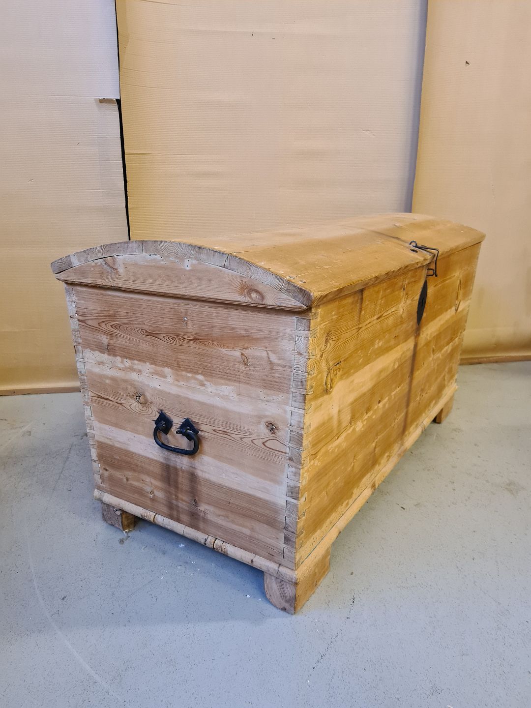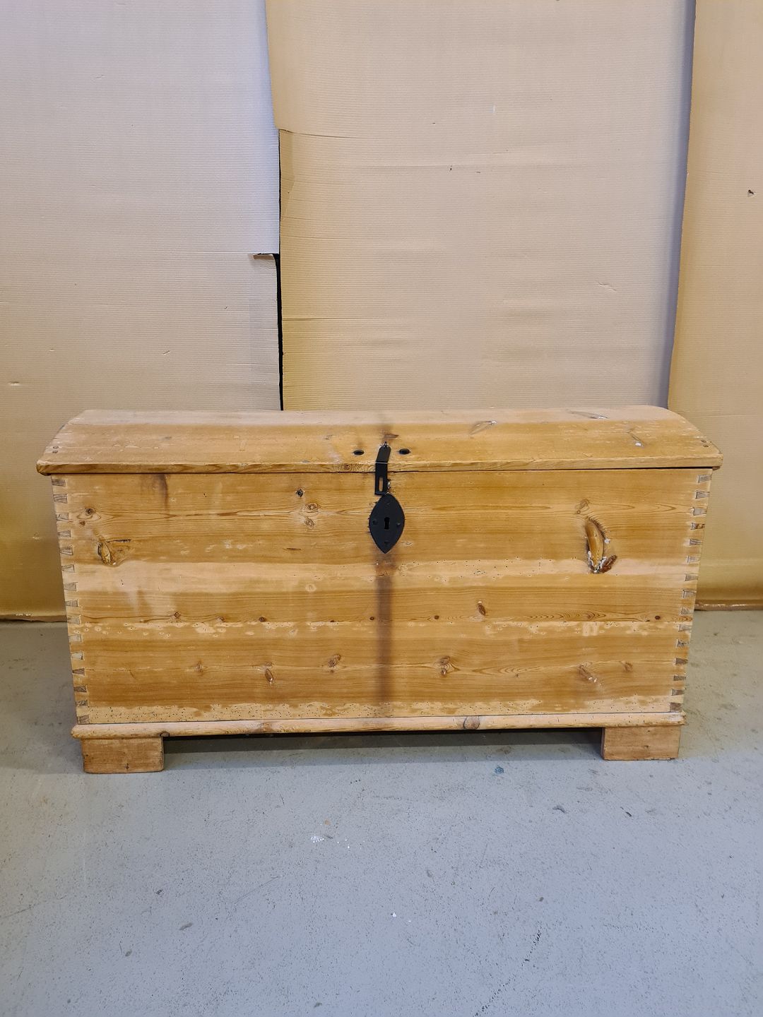 Kiste i massivt fyrretræ fra 1890erne. Den har patina. Højde 72cm Bredde 127cm Dybde 63cm Emne nummer: 72492