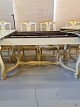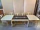 Spisebord med 3 tillægsplader og 6 stole, fra 1920erne. Sættet har brugsspor, stolene er stabile men betrækket er godt brugt. Bord : H 75cm B 100cm L 161cm Længde med 3 tillægsplader 260cm Stolene : Højde 95cm Sædehøjde 45cm Emne nummer: 72591