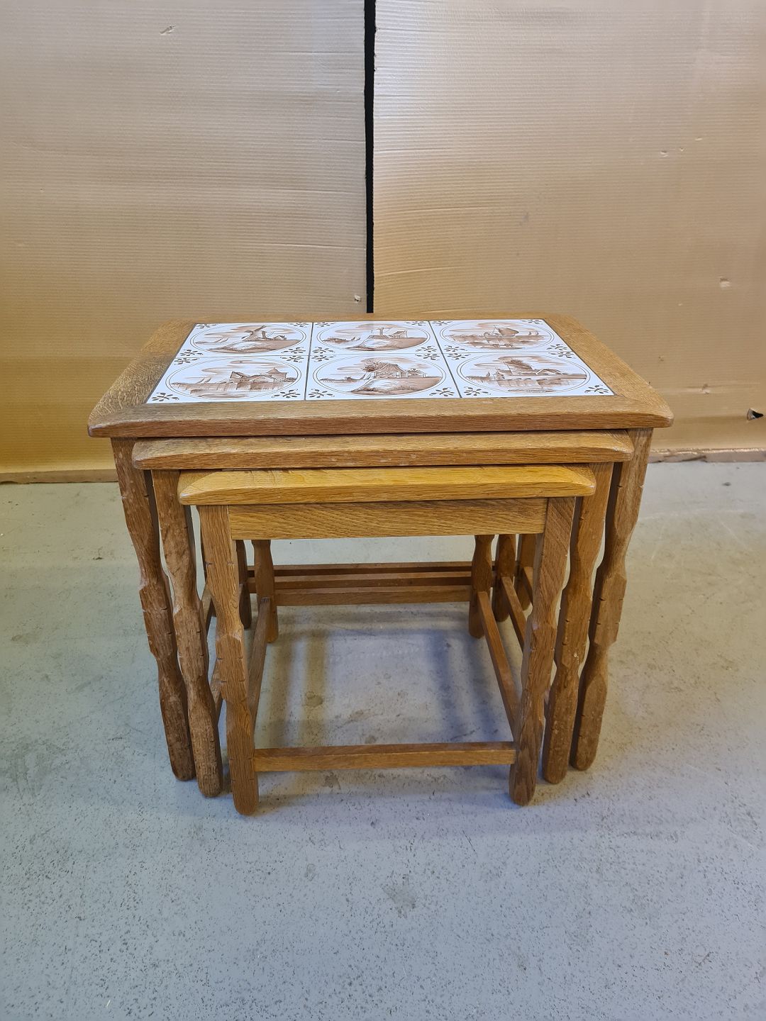 # indskudsborde i egetræ med kakler, fra 1980erne. De har brugsspor. H 47cm B 55cm D 49cm Emne nummer: 72592