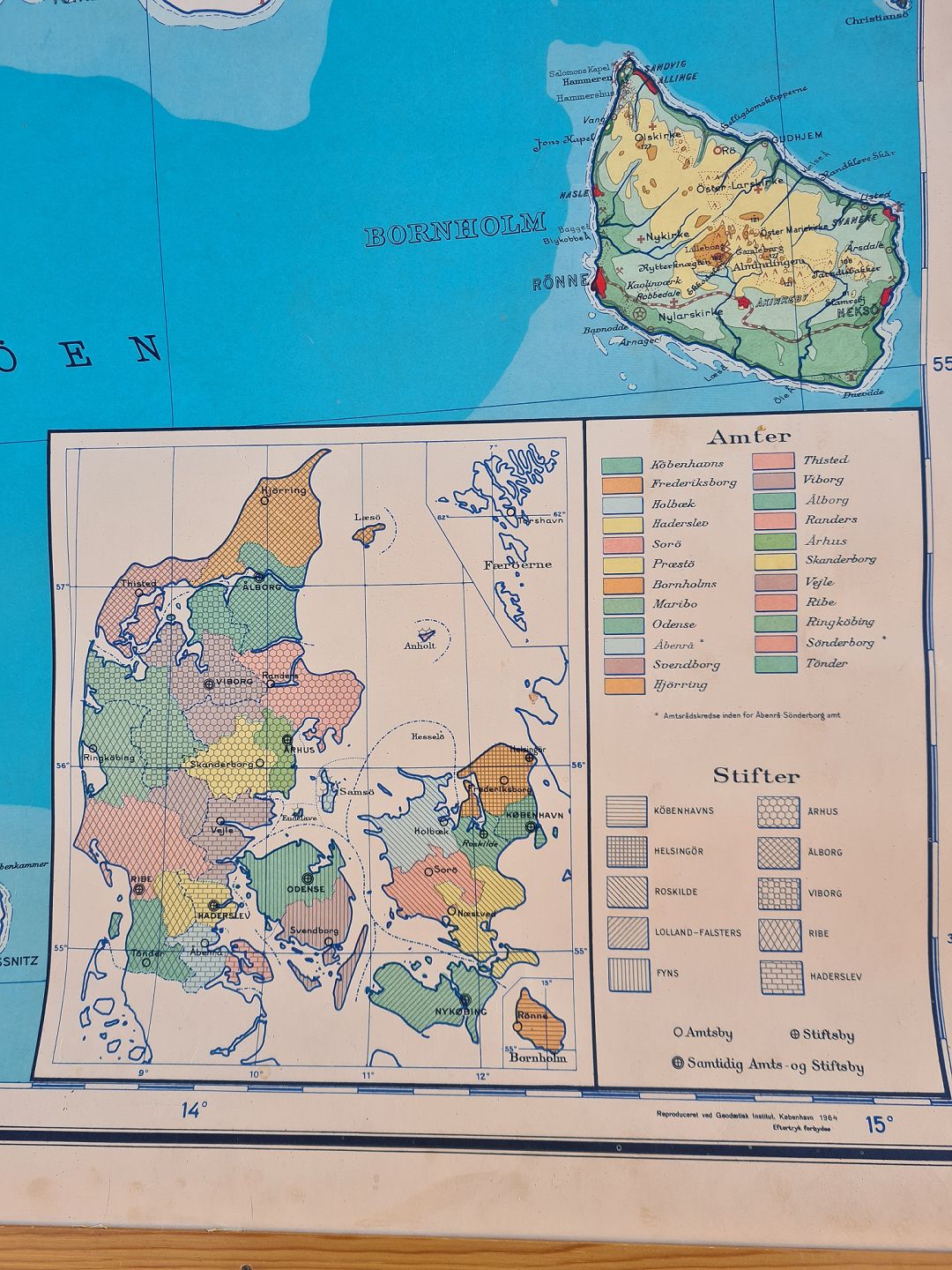 Skolekort over Danmark fra 1964