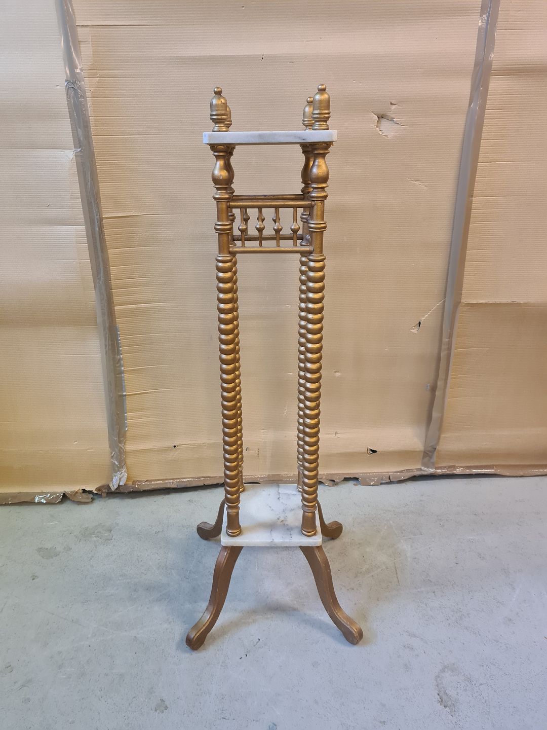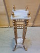 Guld malet piedestal med marmor, fra 1920erne. Den har brugsspor og mangler en lille pind. H 123cm B 24cm D 25cm Emne nummer: 72906