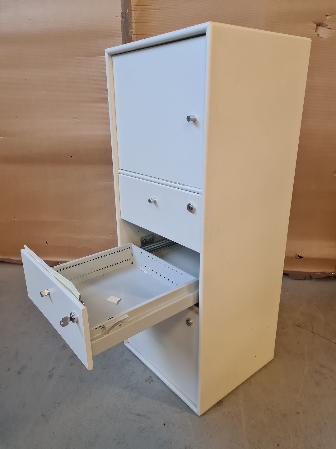 Malet Montana skab fra 2000erne. Det har brugsspor og en defekt skuffekant. ( se foto ) Der medfølger kun en nøgle. H 105cm B 42cm D 39cm Emne nummer: 72980