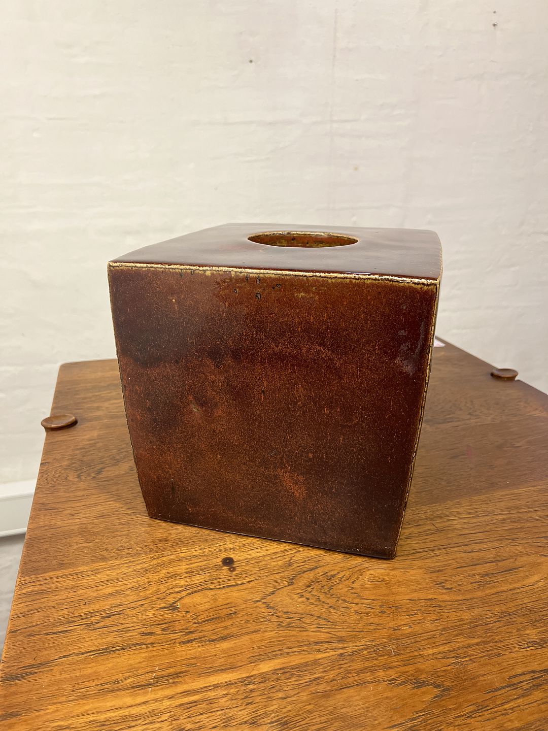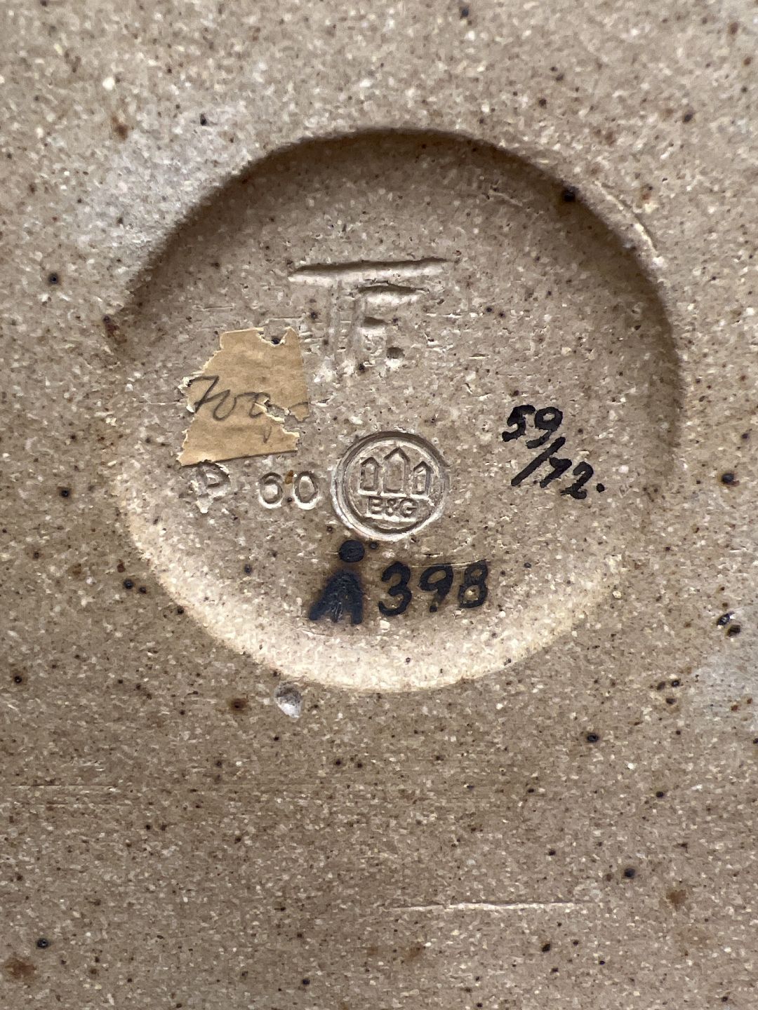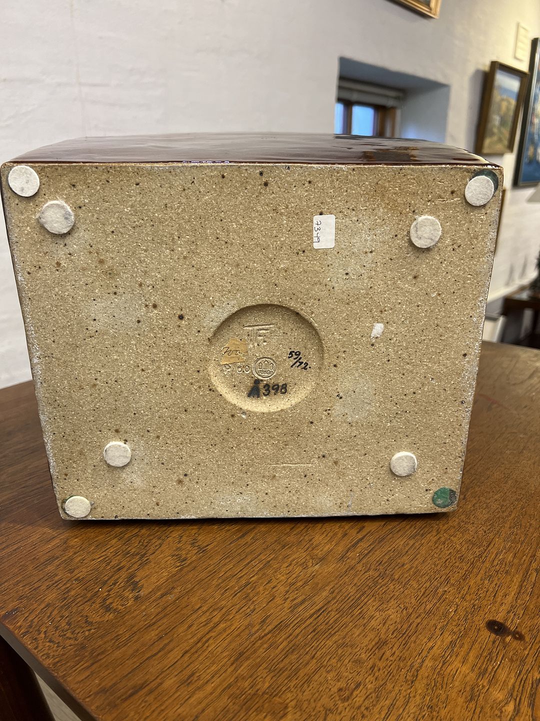 Tut Fog vase i glaseret stentøj udført hos Bing & Grøndahl ca. 1960'erne. Pæn stand, dog med 2 små chips på vasens munding. Se foto. Mål: H. 24 cm. B. 29 cm. D. 25,5 cm. Emne nummer: 50619