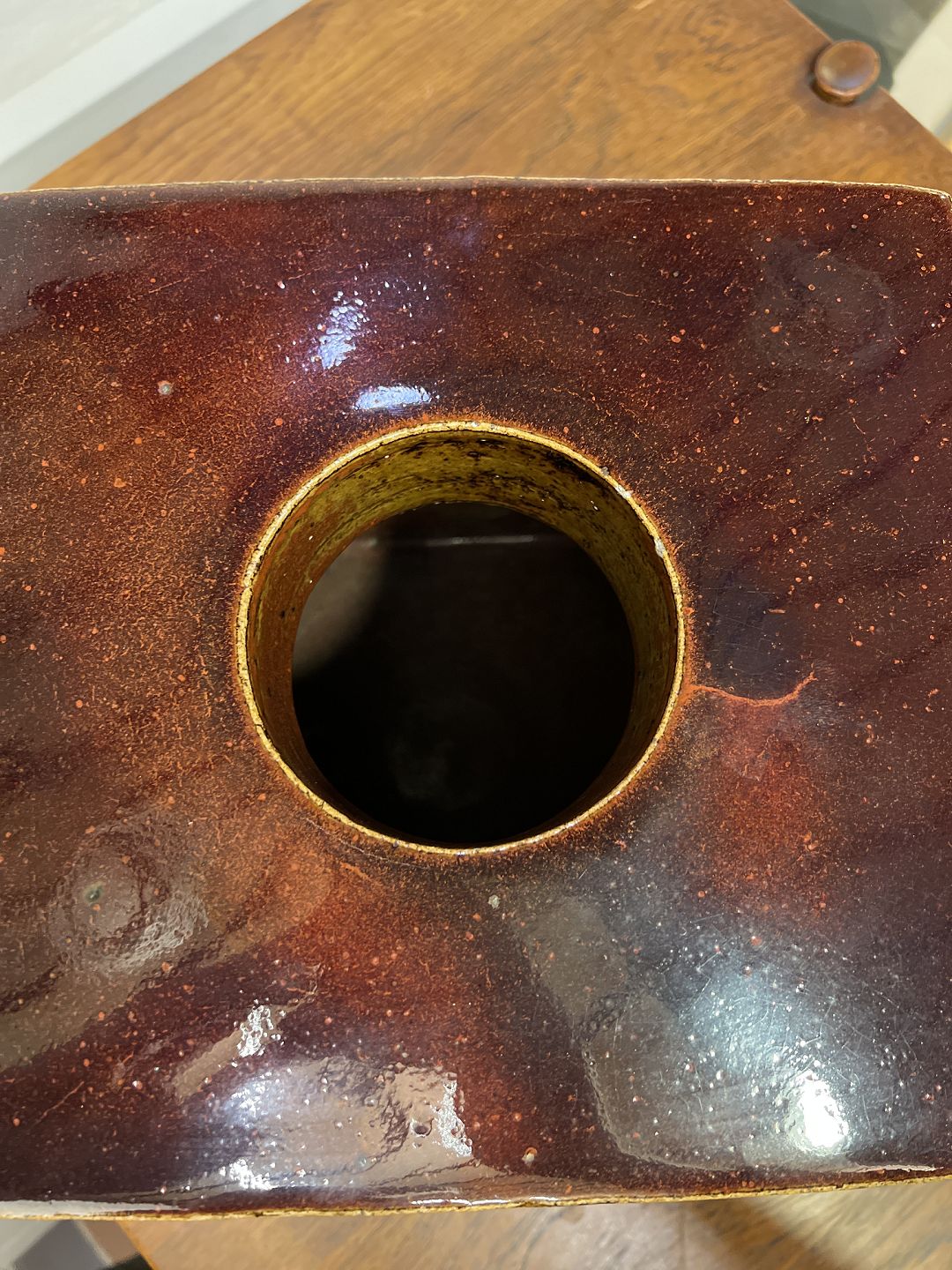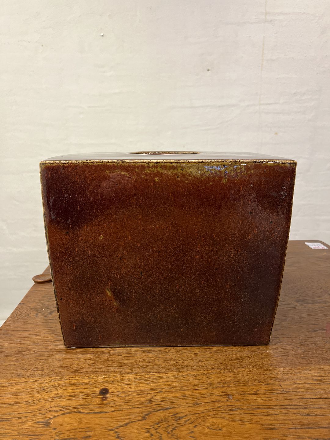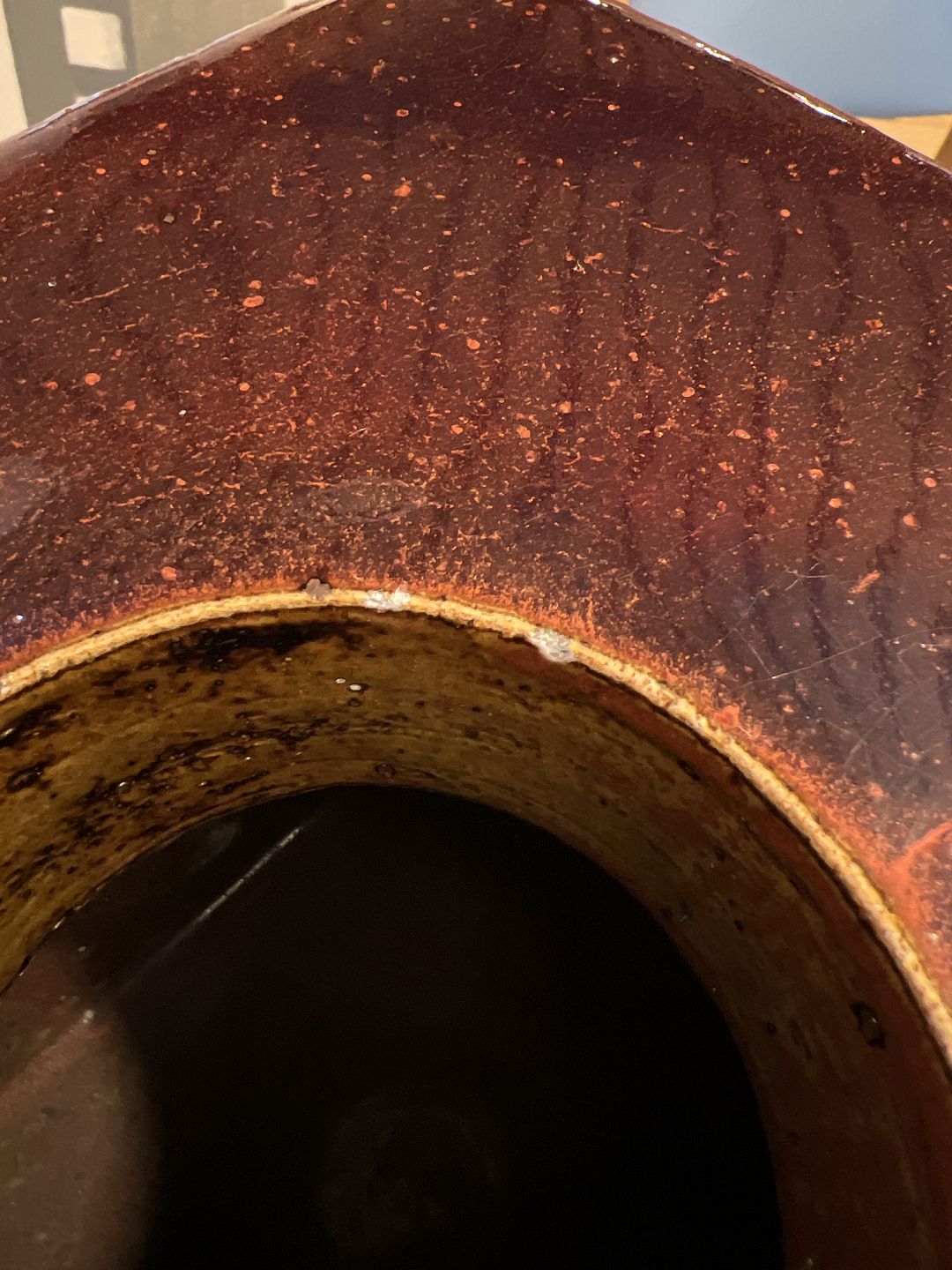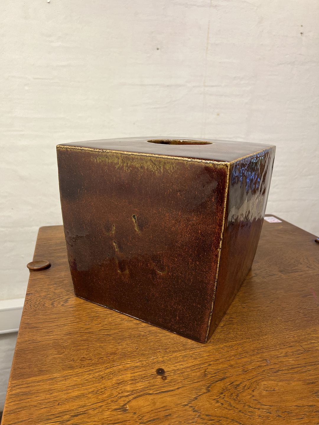 Tut Fog vase i glaseret stentøj udført hos Bing & Grøndahl ca. 1960'erne. Pæn stand, dog med 2 små chips på vasens munding. Se foto. Mål: H. 24 cm. B. 29 cm. D. 25,5 cm. Emne nummer: 50619