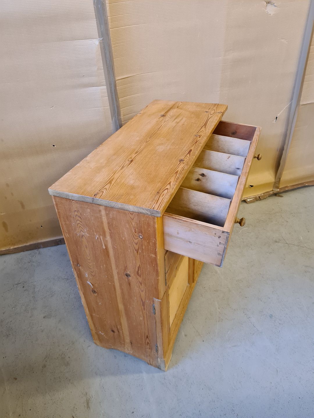 Kommode i massivt fyrretræ, fra 1930erne. Den har lidt brugsspor. H 86cm B 85cm D 36 Emne nummer: 73118