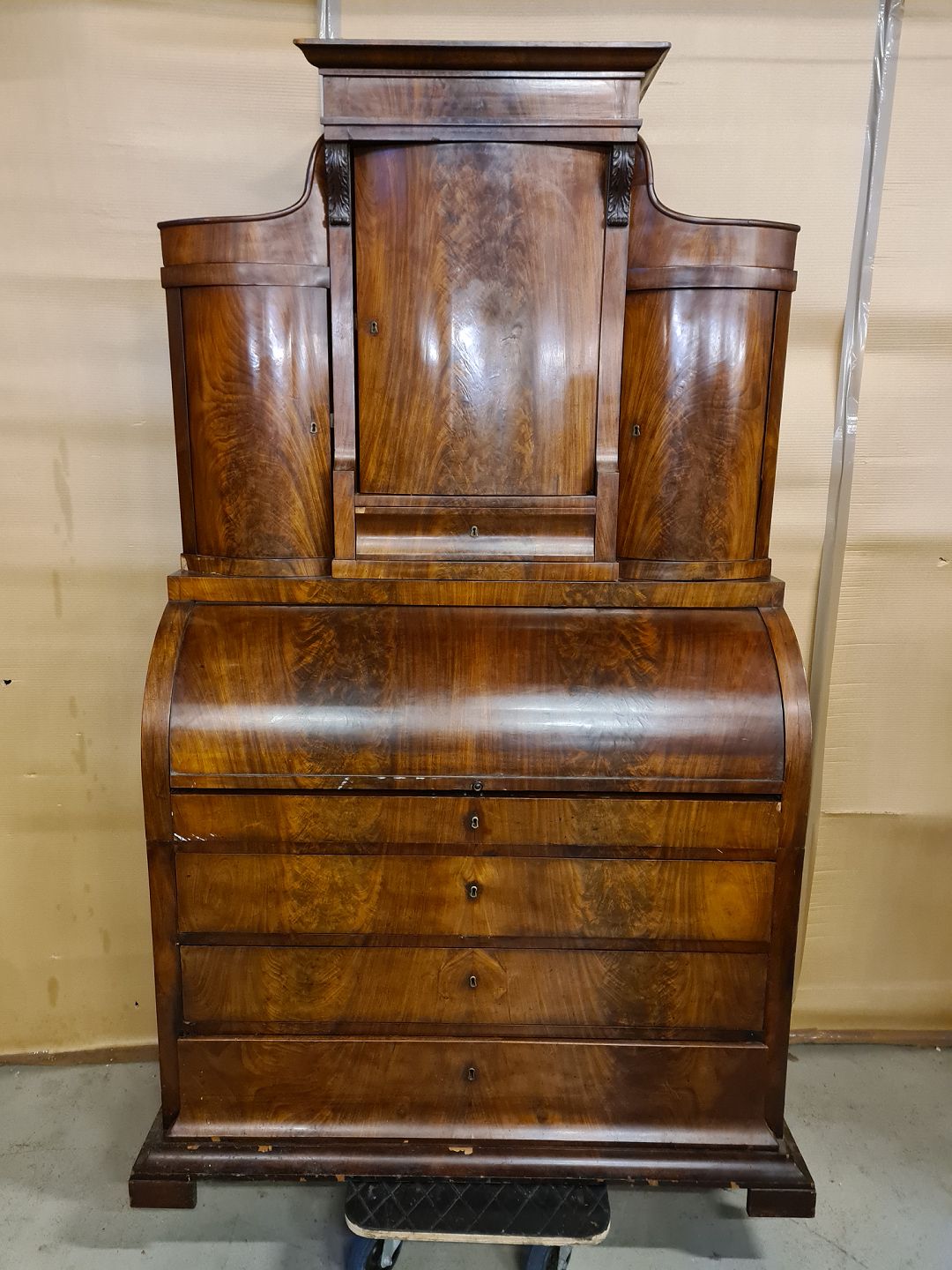 Chatol i fineret mahogni, fra 1890erne. Det her brugsspor og et par løse lister. H 212cm B 124cm D 56cm Emne nummer: 73131