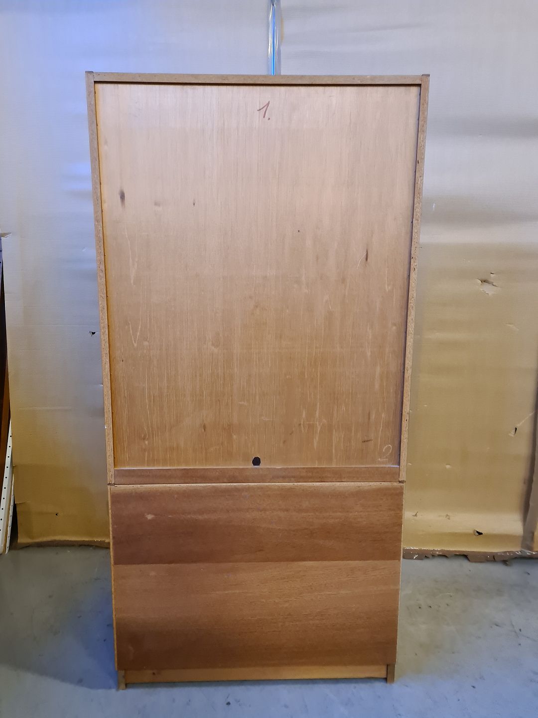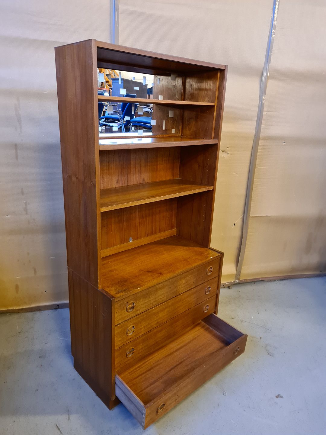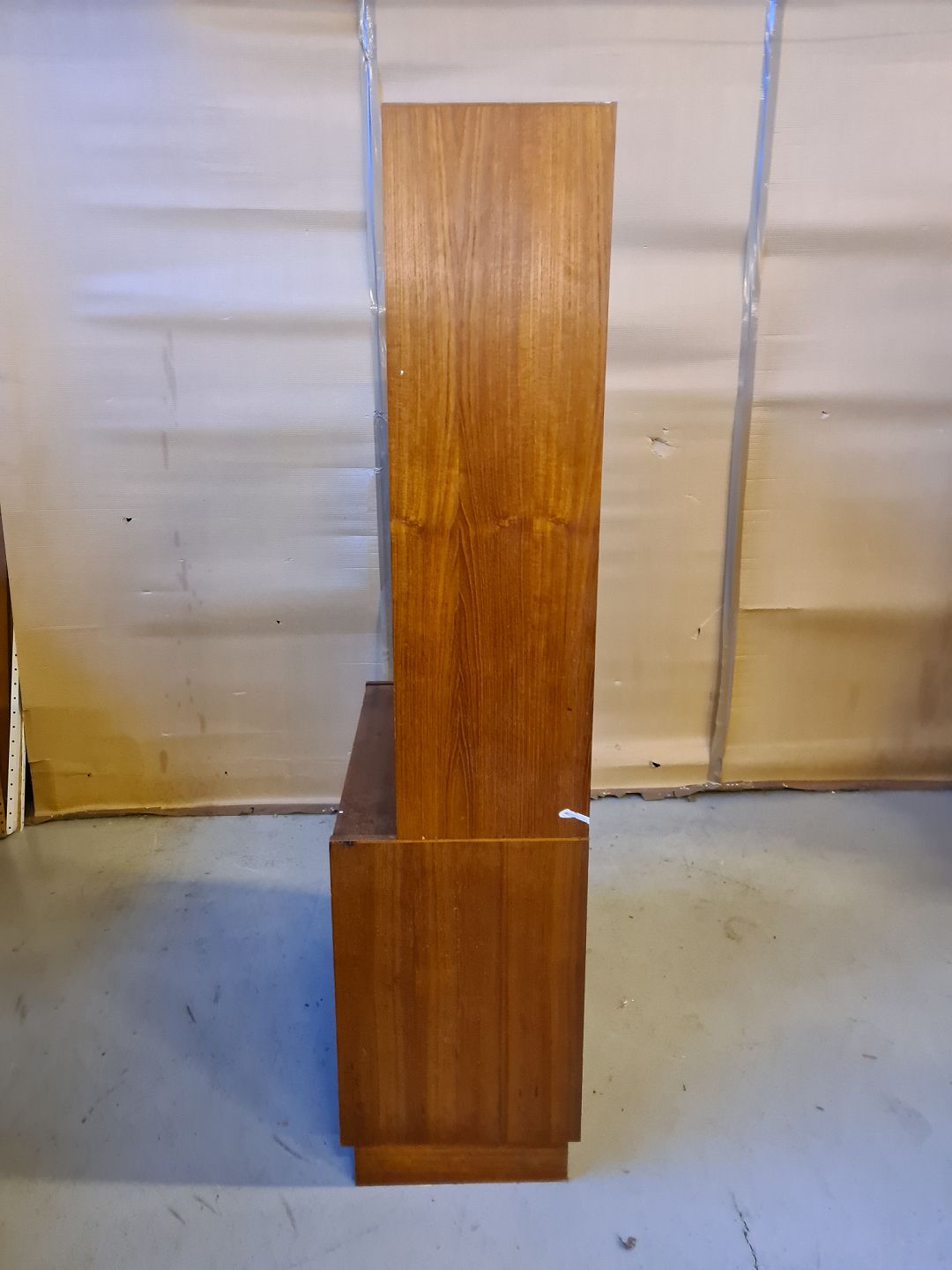 Reolsektion i fineret teaktræ, fra 1960erne. Den har en del brugsspor. H 173cm B 84cm D 42cm Emne nummer: 73146