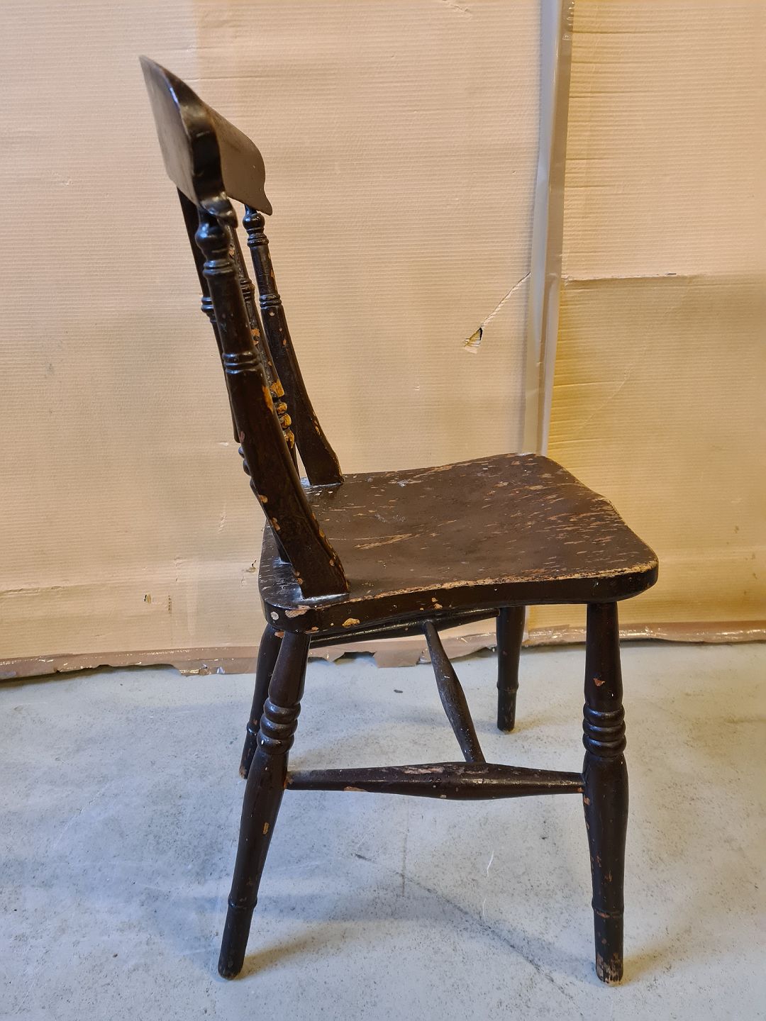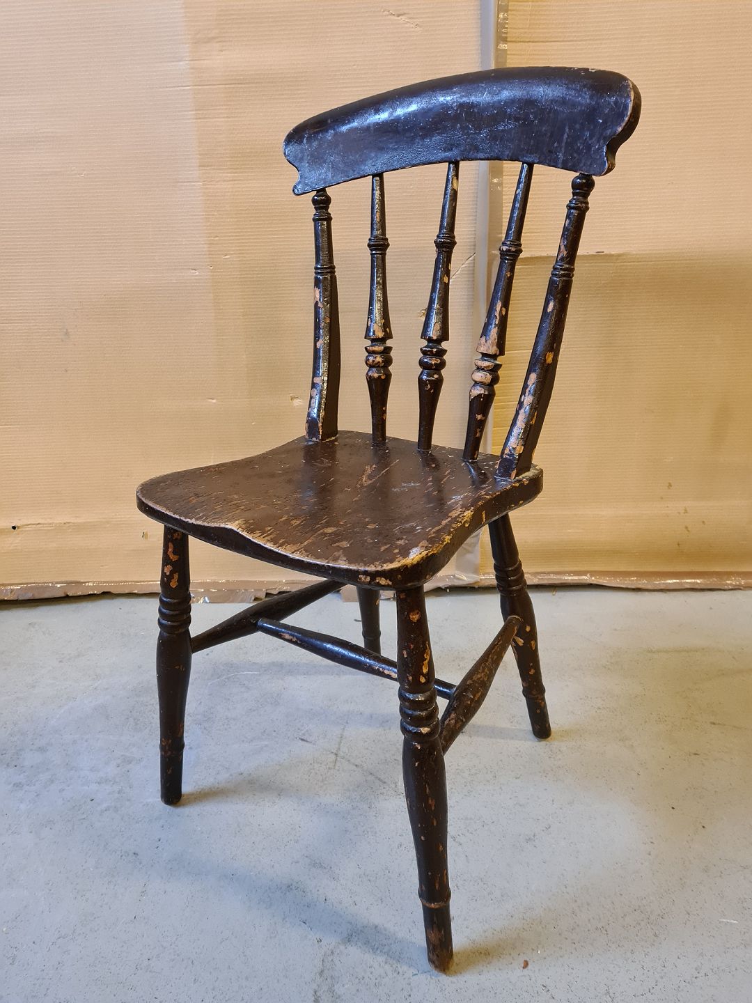 Malet stol fra 1900erne. Den har brugsspor og er lidt ledløs. Højde 88cm Sædehøjde 46cm Emne nummer: 73156