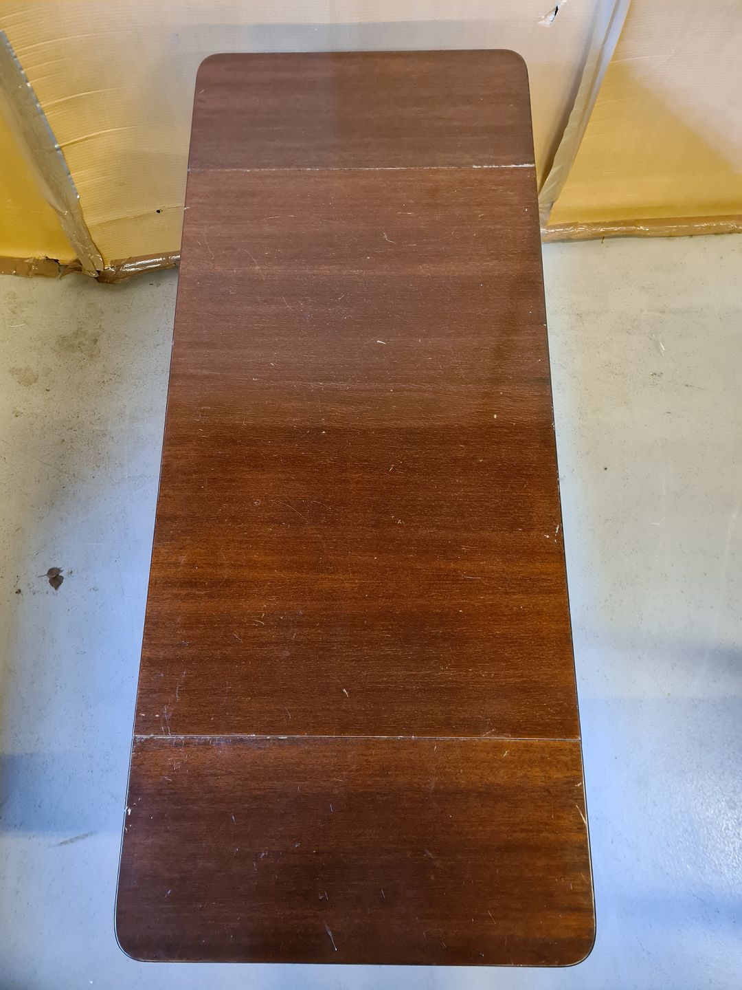 Sofabord i fineret mahogni, fra 1980erne. Det har brugsspor. H 65cm B 55cm L 85cm Længde med klapper 132cm Emne nummer: 73161