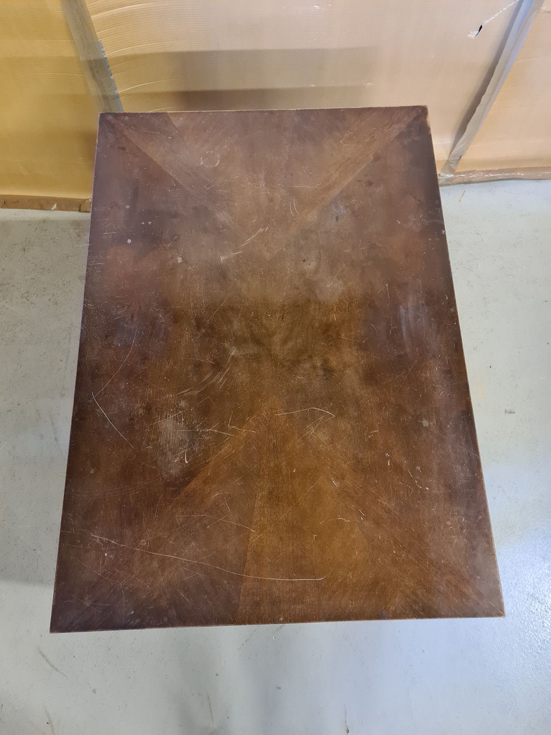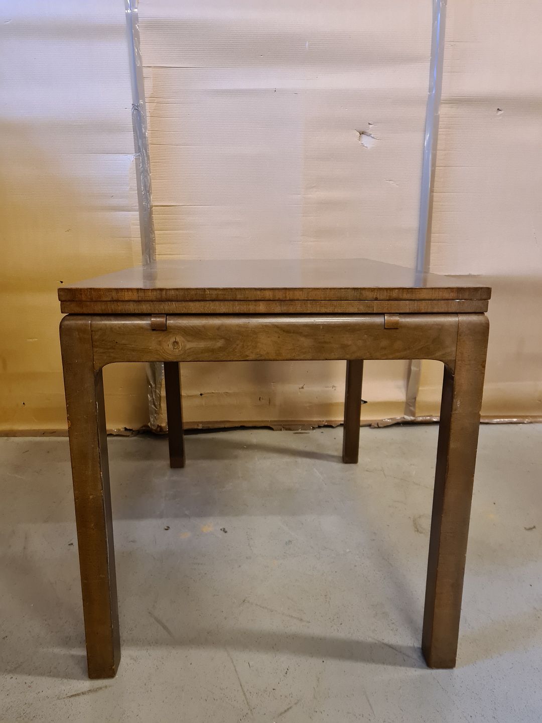 Spisebord i fineret birketræ, fra 1930erne. Det har brugsspor og udtrækket er noget skævt. H 74cm B 70cm L 100cm Længde med udtræk 184cm Emne nummer: 73177