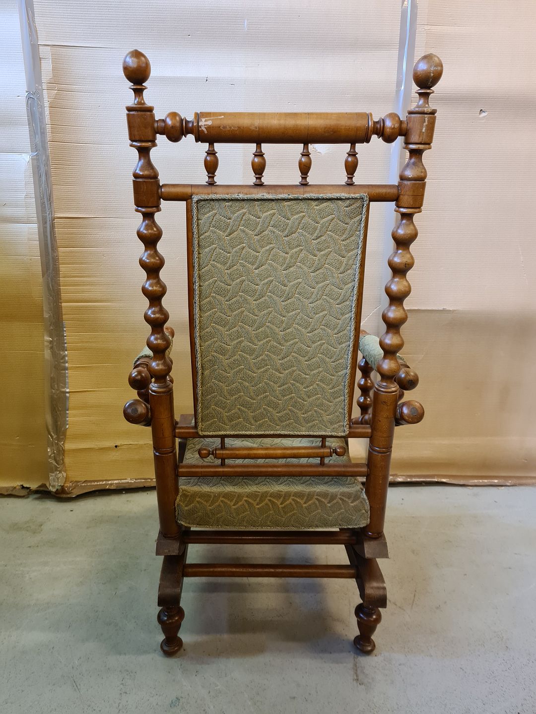 Armstol i mahogni og bøgetræ, fra 1900erne. Den har brugsspor. Højde 115cm Sædehøjde 40cm Emne nummer: 73186