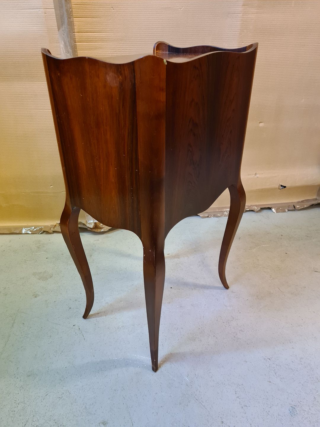Lille kommode med intarsia i palisander og bøgetræ, fra 1980erne. H 72cm B 39cm D 28cm Emne nummer: 73245