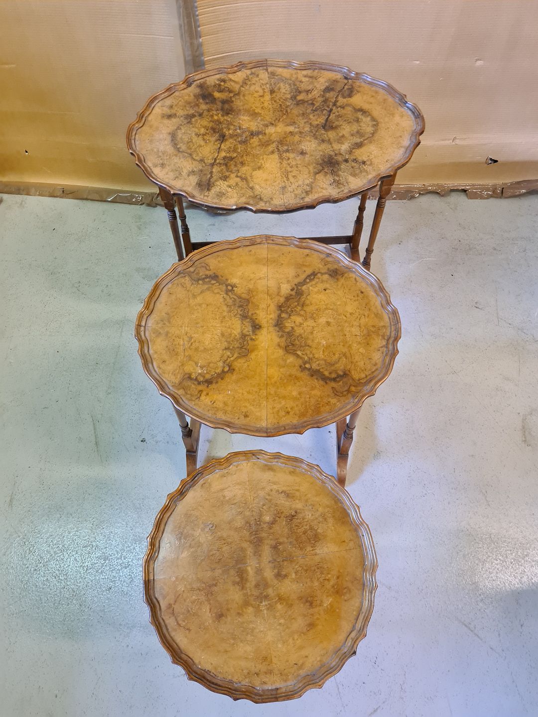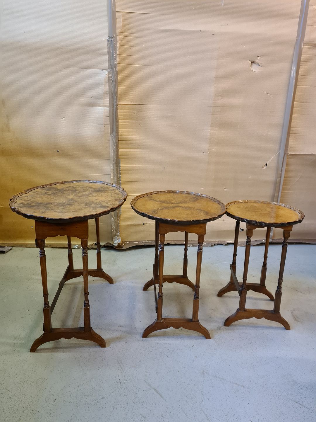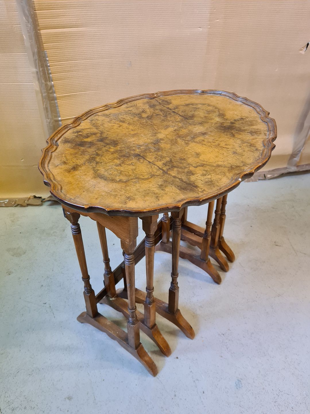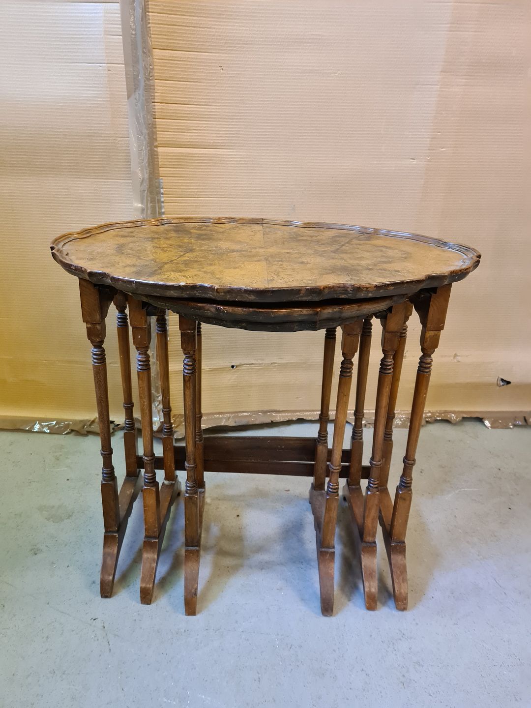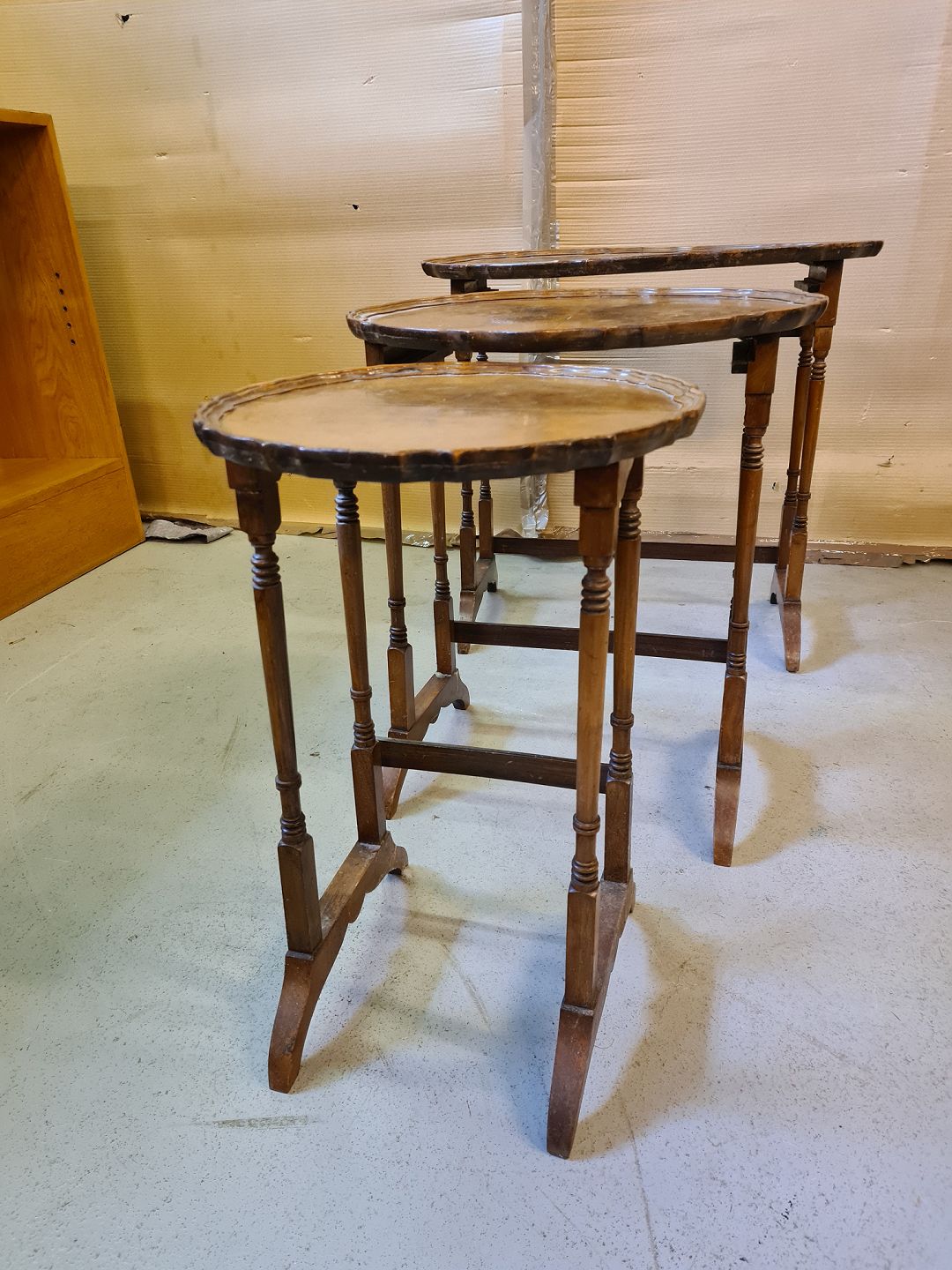 3 Borde i mahogni og bøgetræ, fra 1980erne. De har brugsspor. H 56cm B 61cm D 46cm Emne nummer: 73248