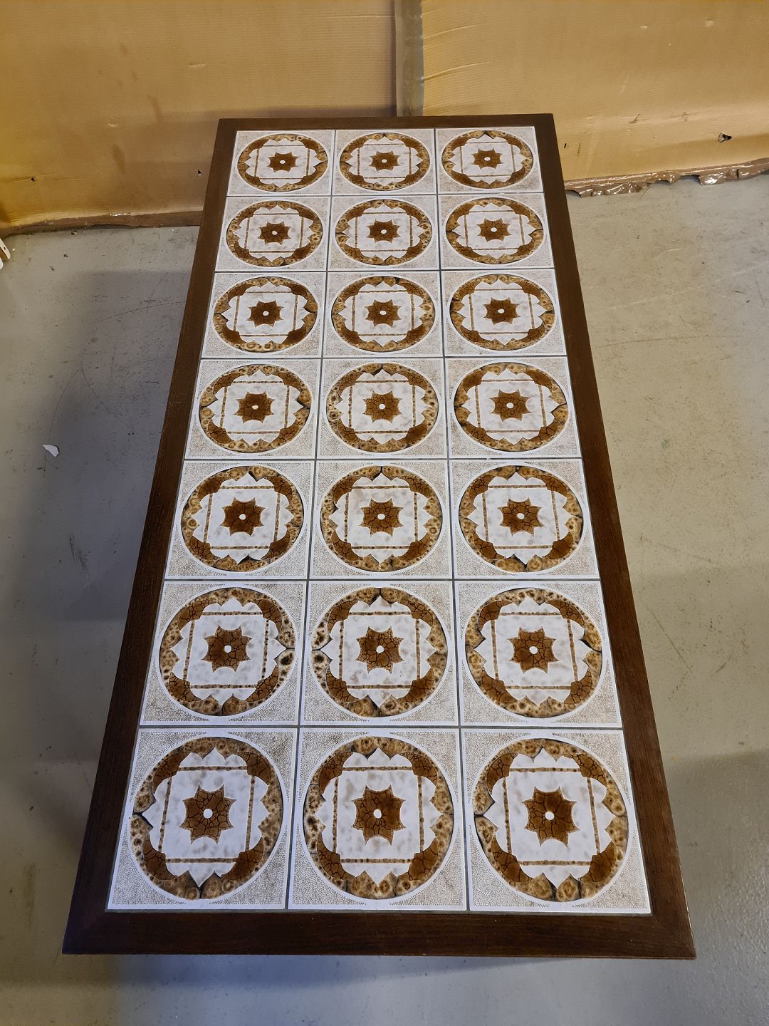Sofabord i fineret palisander med kakler, fra 1960erne. Det har små brugsspor. H 50cm B 68cm L 150cm Emne nummer: 73263