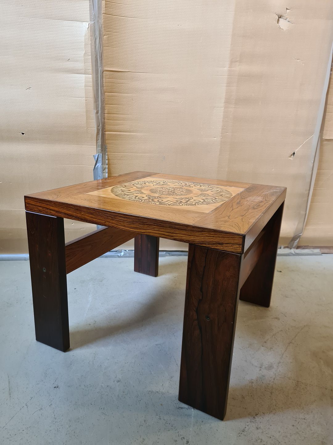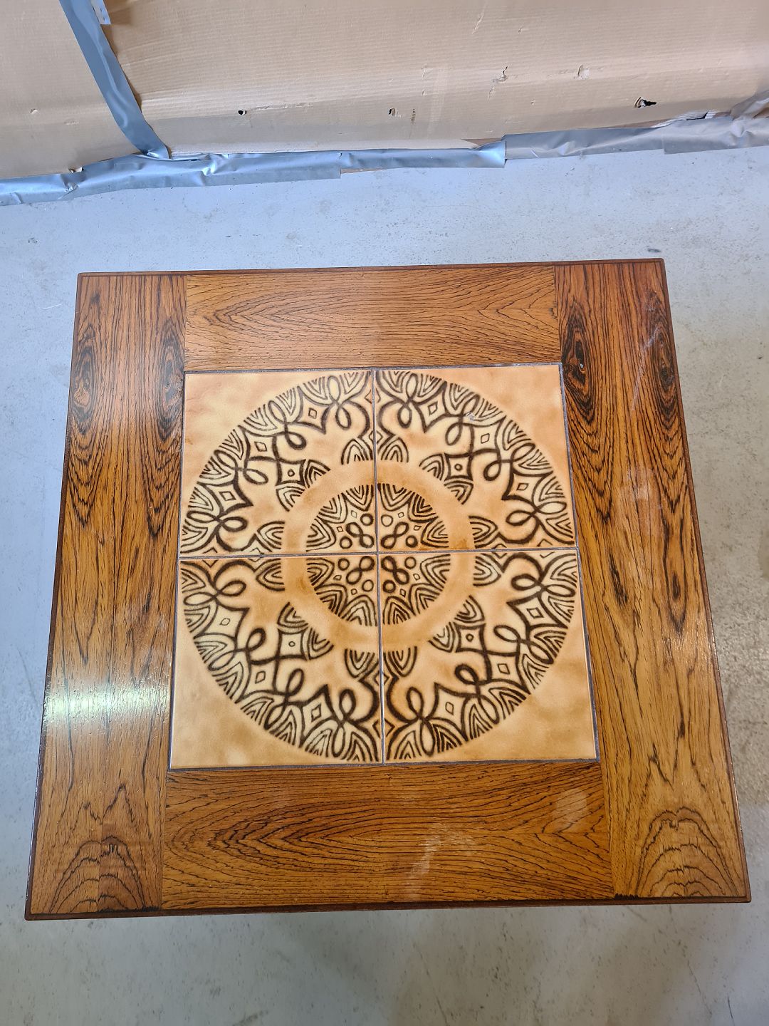 Lampebord i fineret palisander med kakler, fra 1970erne. Det har brugsspor. H 50cm B 65cm D 65cm Emne nummer: 73568