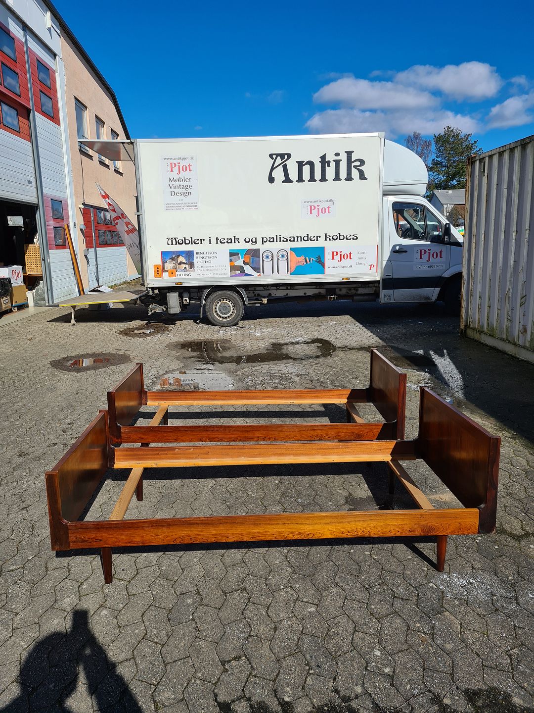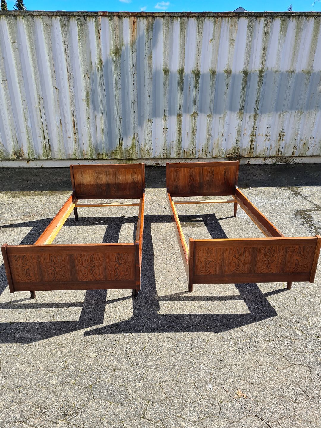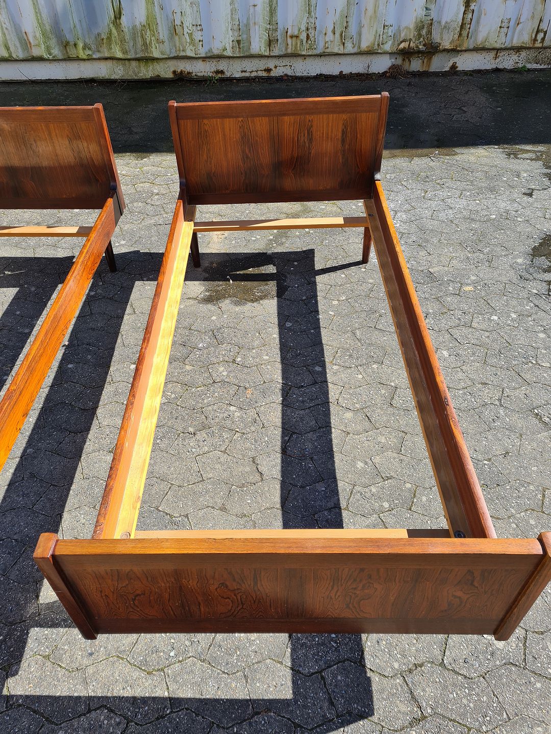 2 Senge i fineret palisander, fra 1960erne. Der med følger ikke bunde og madrasser. H 65cm B 90cm L 196cm ( madras mål 85cm X 190cm) Emne nummer: 73636