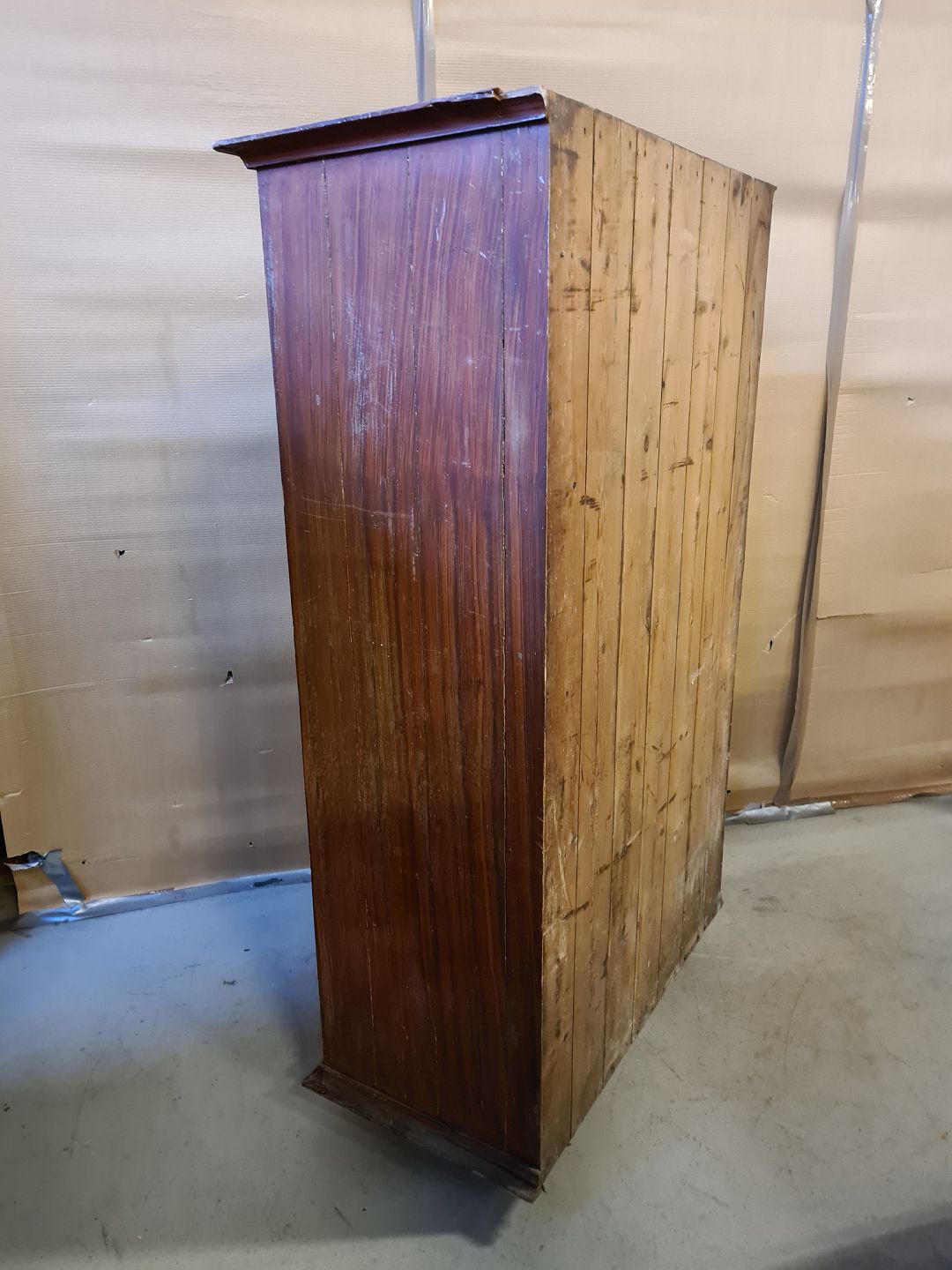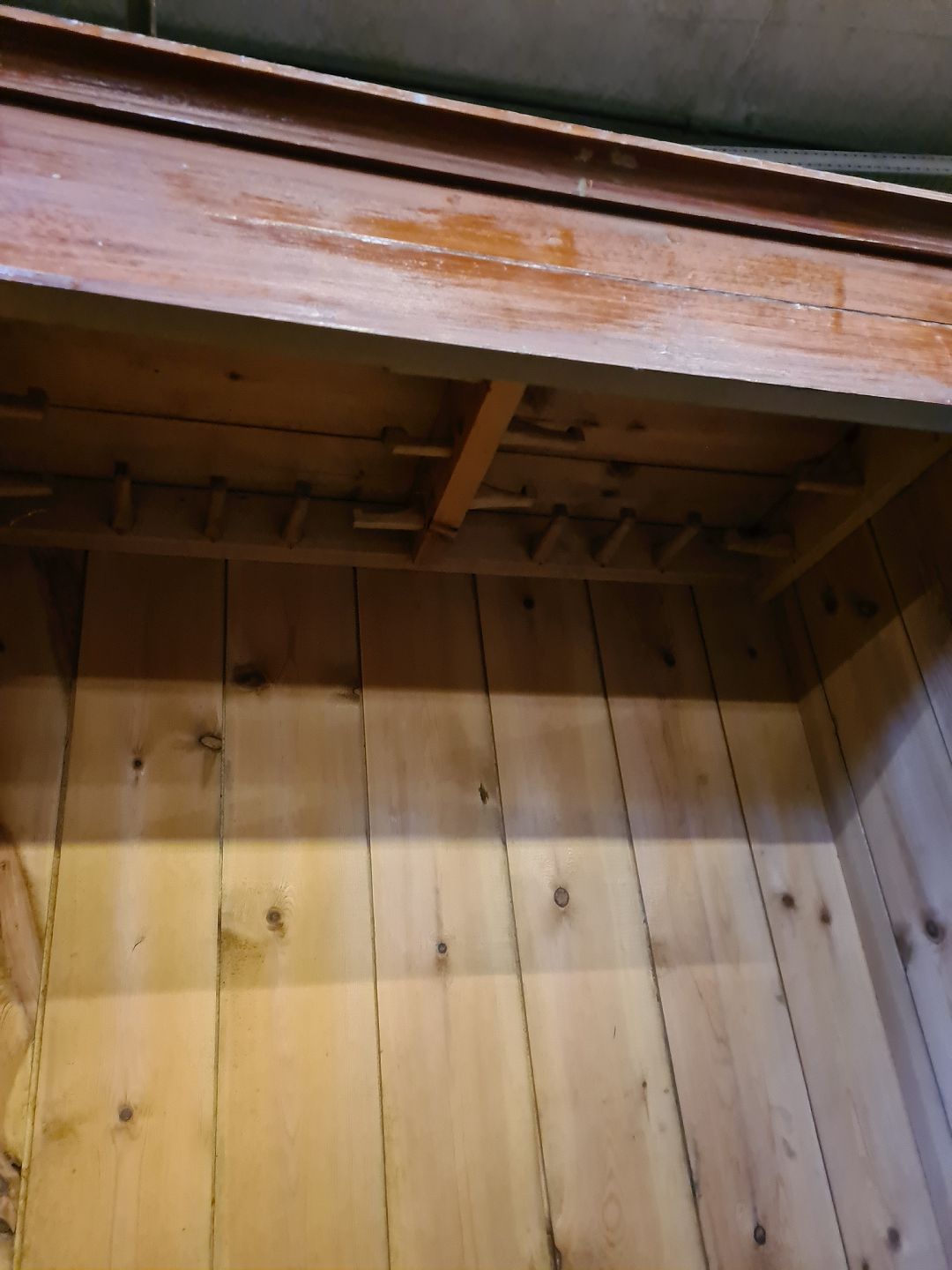 Malet karlekammerskab i massivt fyrretræ, fra 1900erne. Det trænger til at blive peppet op. Højde 167cm Bredde 95cm Dybde 52cm Emne nummer: 73801
