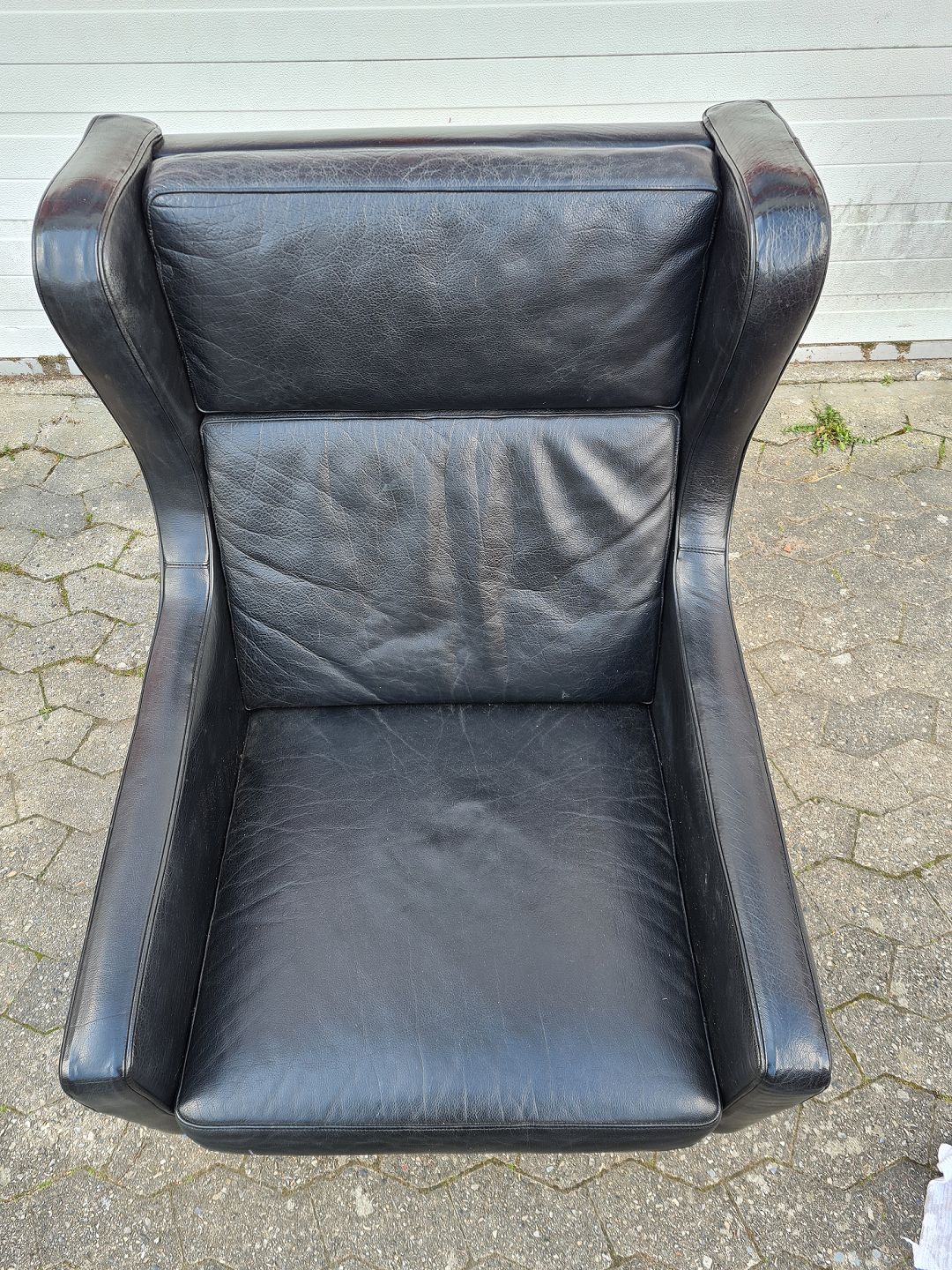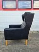Læder lænestol fra 1990erne. Den har brugsspor. Højde 100cm Bredde 73cm Dybde 80cm Sædehøjde 43cm Emne nummer: 73828